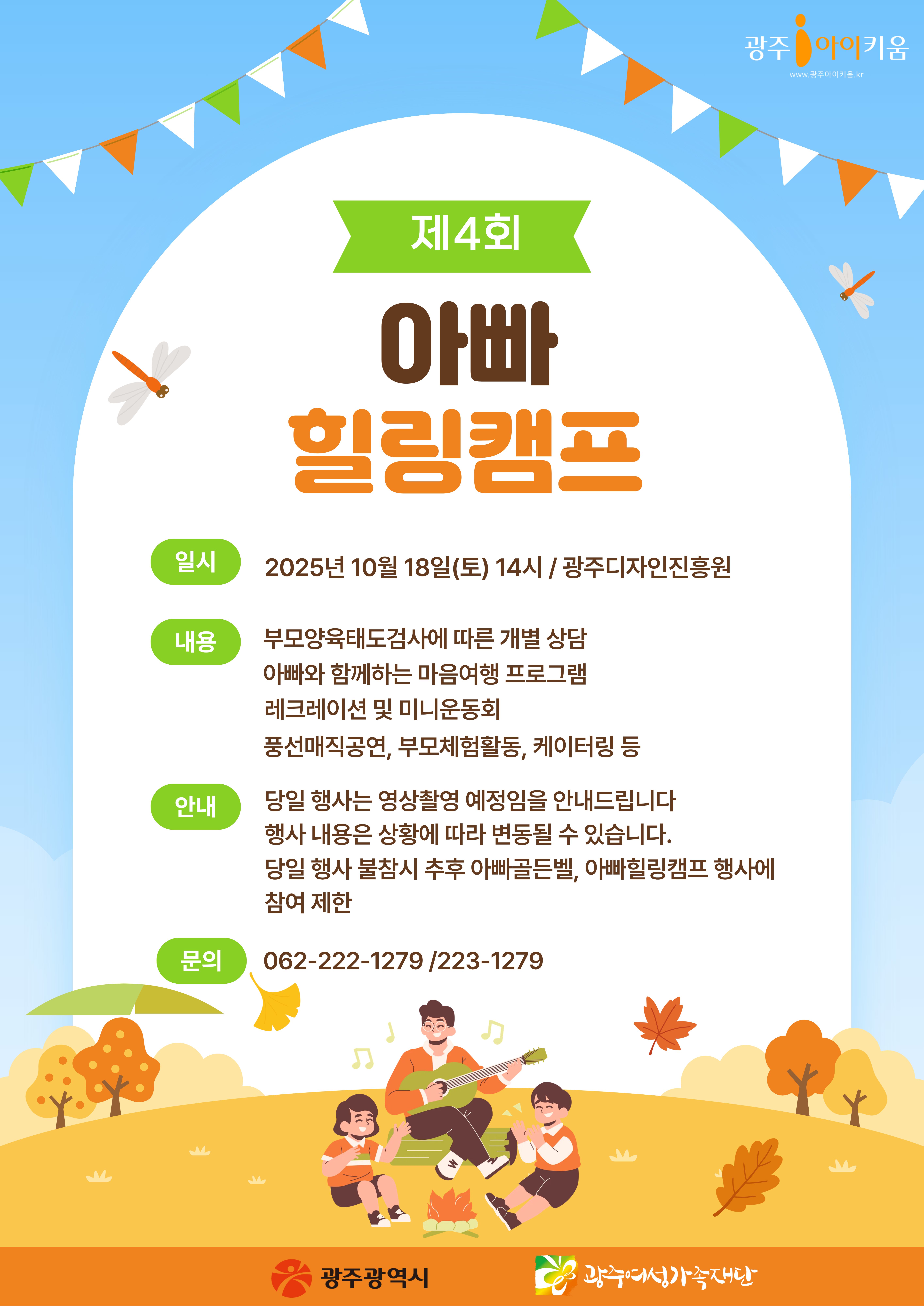 home 맘편한 내★일, 광주아이키움2.0 결혼·임신·출생 영유아 초·중·고 다양한 가족 일생활균형 커뮤니티 아동돌봄지원 소통방 나눔방 광주 아이키움 상담방 돌봄정보방 성폭력 피해 상담 및 사건지원 공지사항 우리동네 돌봄정보 기관별 공지사항 10월 18일, 제4회 아빠힐링캠프가 시작됩니다. 등록일 : 2025-10-14 14:02 카테고리 : 카테고리 없음 작성자 : 운영자 조회수 : 197 목록