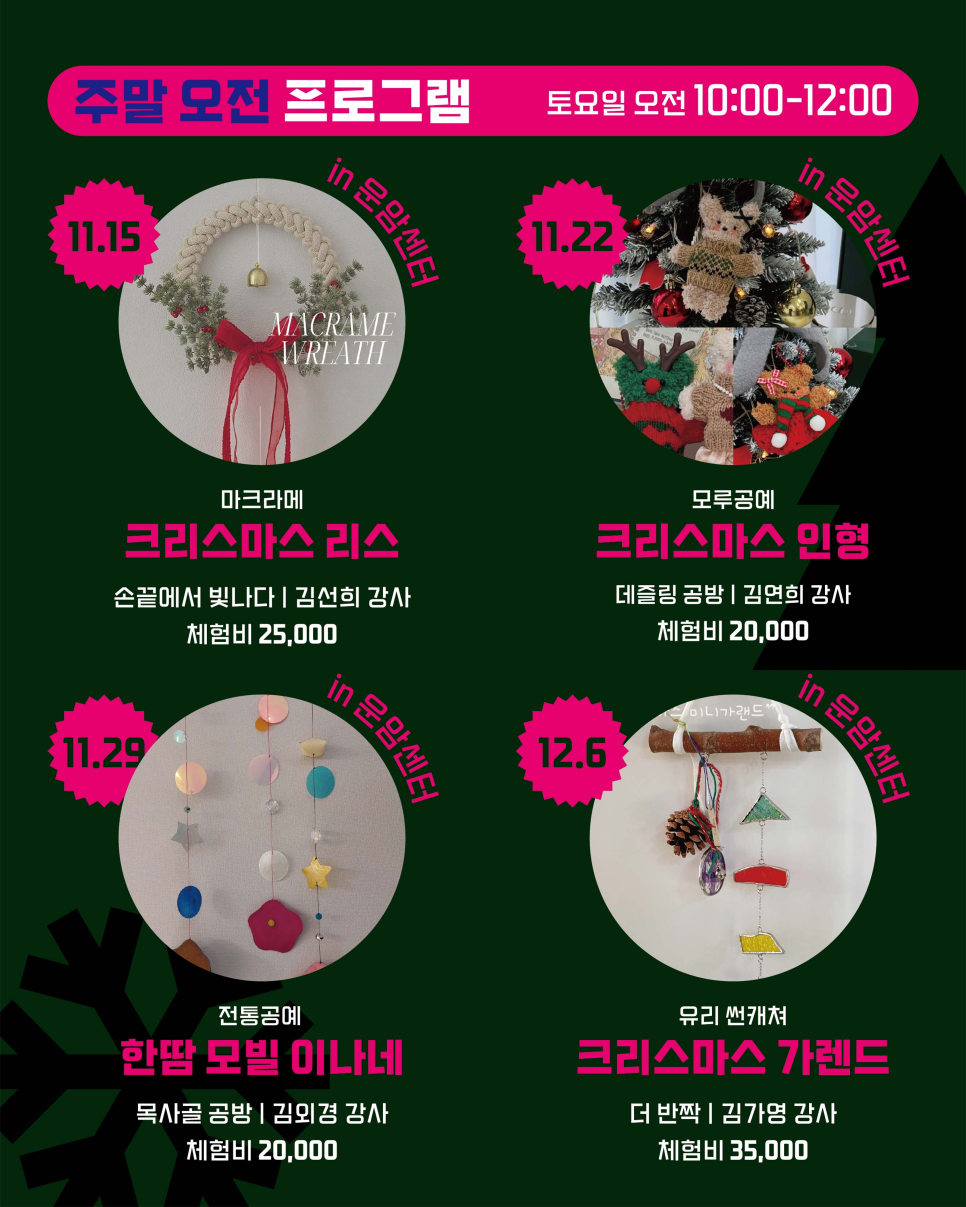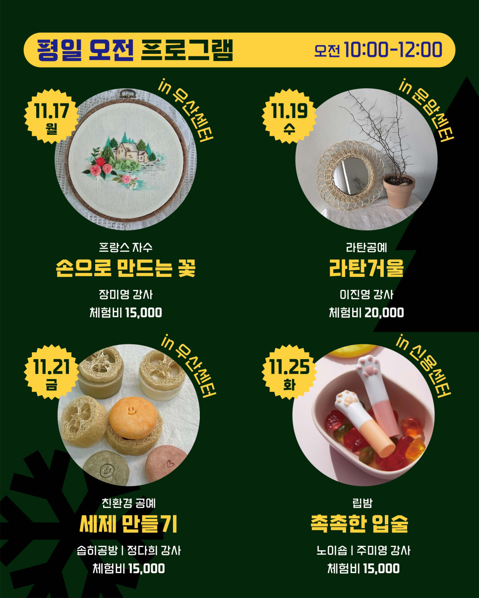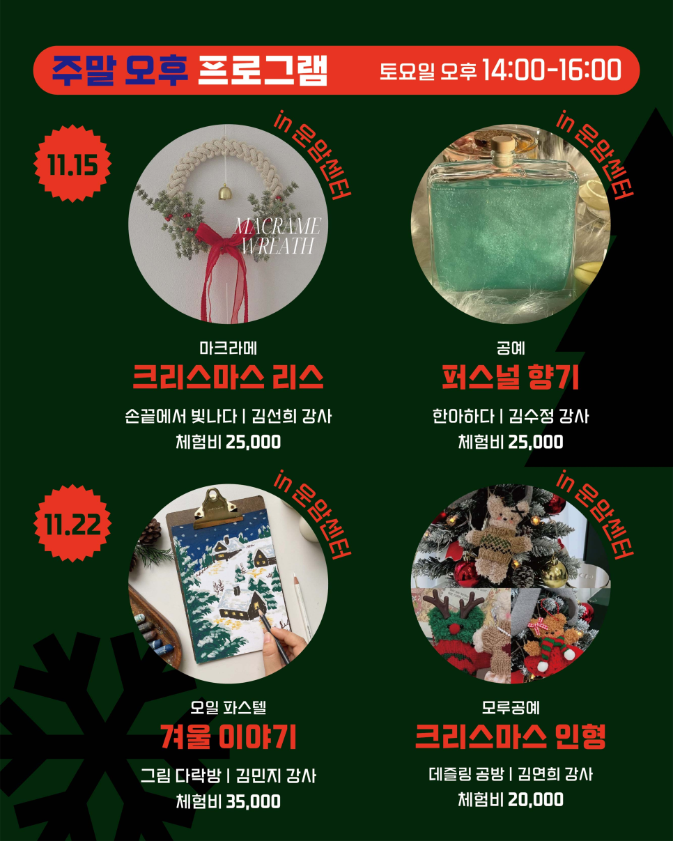 home 맘편한 내★일, 광주아이키움2.0 결혼·임신·출생 영유아 초·중·고 다양한 가족 일생활균형 커뮤니티 아동돌봄지원 소통방 나눔방 광주 아이키움 상담방 돌봄정보방 성폭력 피해 상담 및 사건지원 공지사항 우리동네 돌봄정보 기관별 공지사항 [북구생활문화센터]연말 특별 핫클래스 원데이마켓 등록일 : 2025-11-14 10:39 카테고리 : 카테고리 없음 작성자 : 운영자 조회수 : 69 출처:북구청 목록
