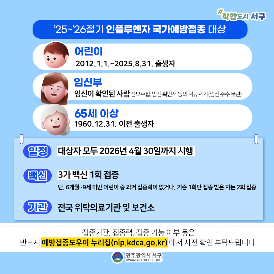 home 맘편한 내★일, 광주아이키움2.0 결혼·임신·출생 영유아 초·중·고 다양한 가족 일생활균형 커뮤니티 아동돌봄지원 소통방 나눔방 광주 아이키움 상담방 돌봄정보방 성폭력 피해 상담 및 사건지원 공지사항 우리동네 돌봄정보 기관별 공지사항 [서구청]인플루엔자 국가 예방접종 대상자 안내 등록일 : 2025-11-18 14:52 카테고리 : 카테고리 없음 작성자 : 운영자 조회수 : 65 출처:서구청 목록