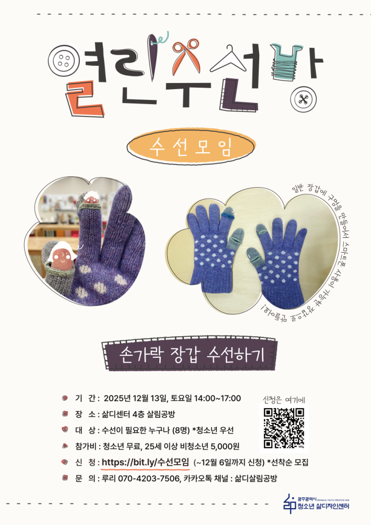 대상 : 수선이 필요한 누구나 8명 (*청소년 우선)