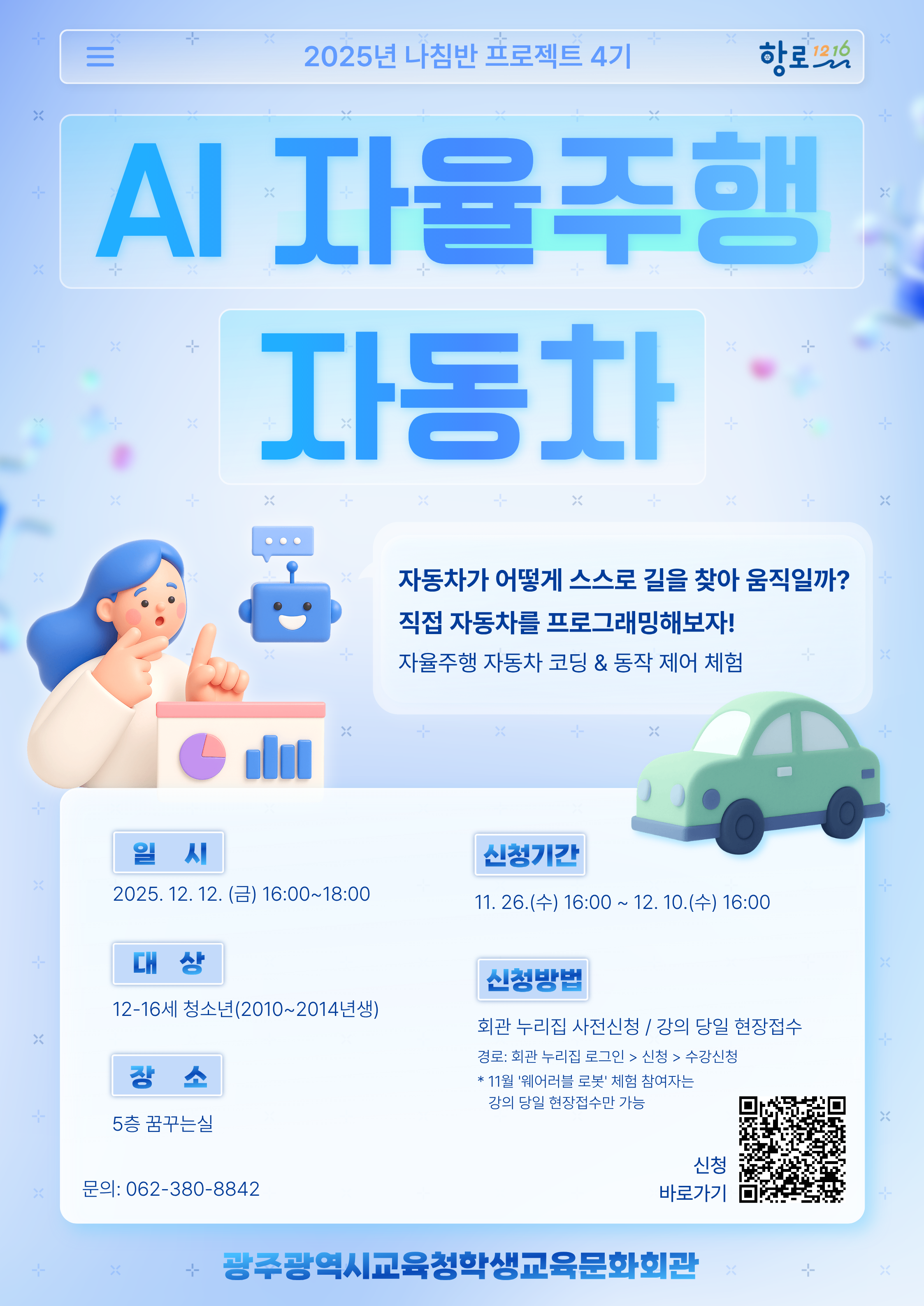 어떻게 자동차가 스스로 길을 찾아 움직이는지 궁금했던 청소년들은 모두 모이세요!
