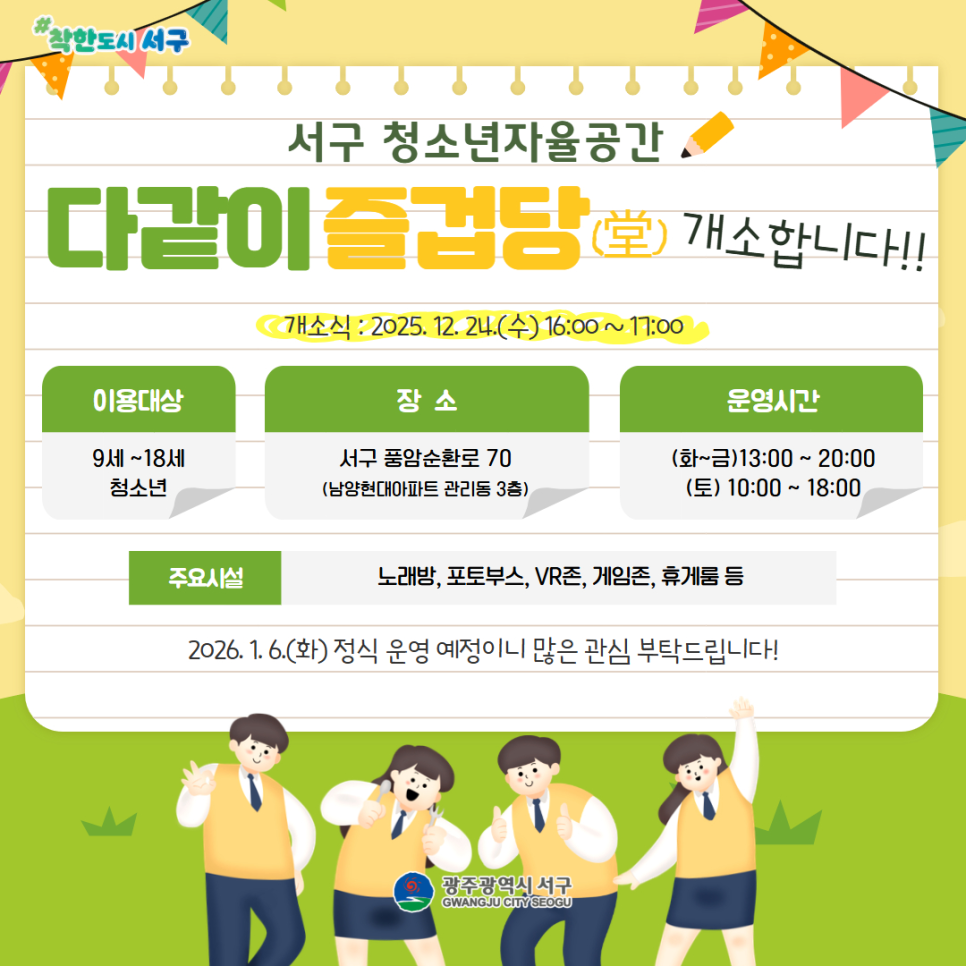 [서구청]서구 청소년자율공간 다같이즐겁당 개소