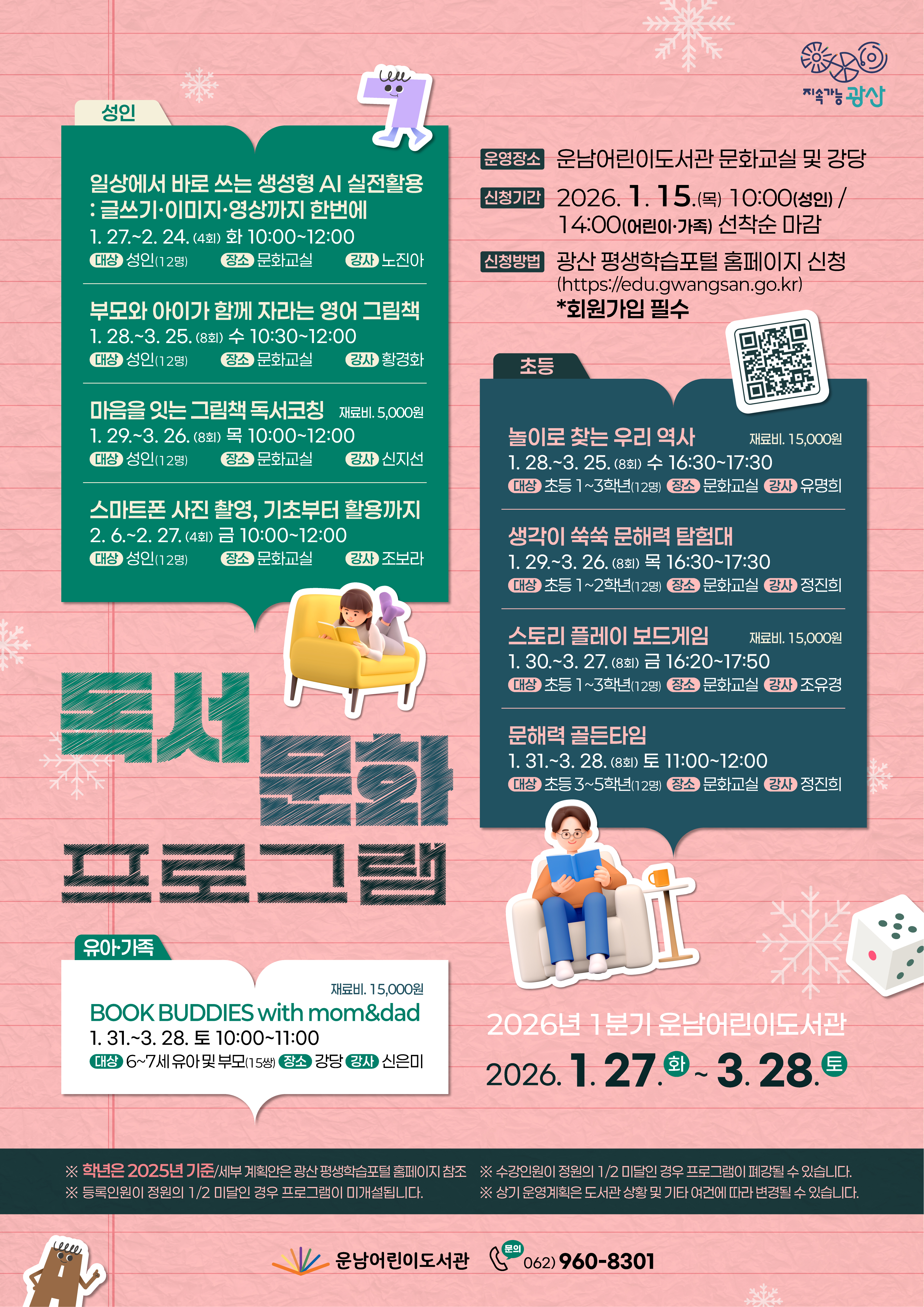 📚 2026년 1분기 운남어린이도서관 독서문화프로그램 수강생 모집