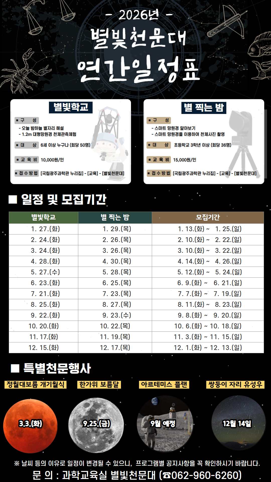 [별빛천문대]2026년 천문프로그램 연간 일정표