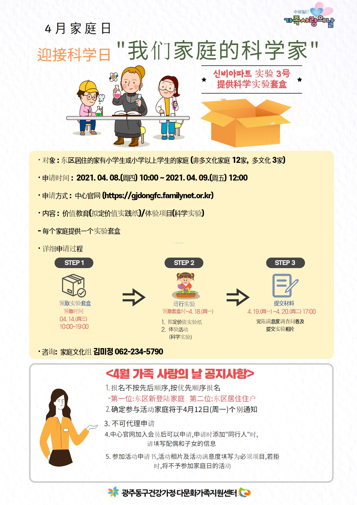 4월 가족사랑의 날 가치와 같이 - 존중 , 체험프로그램 -과학실험(비대면프로그램)