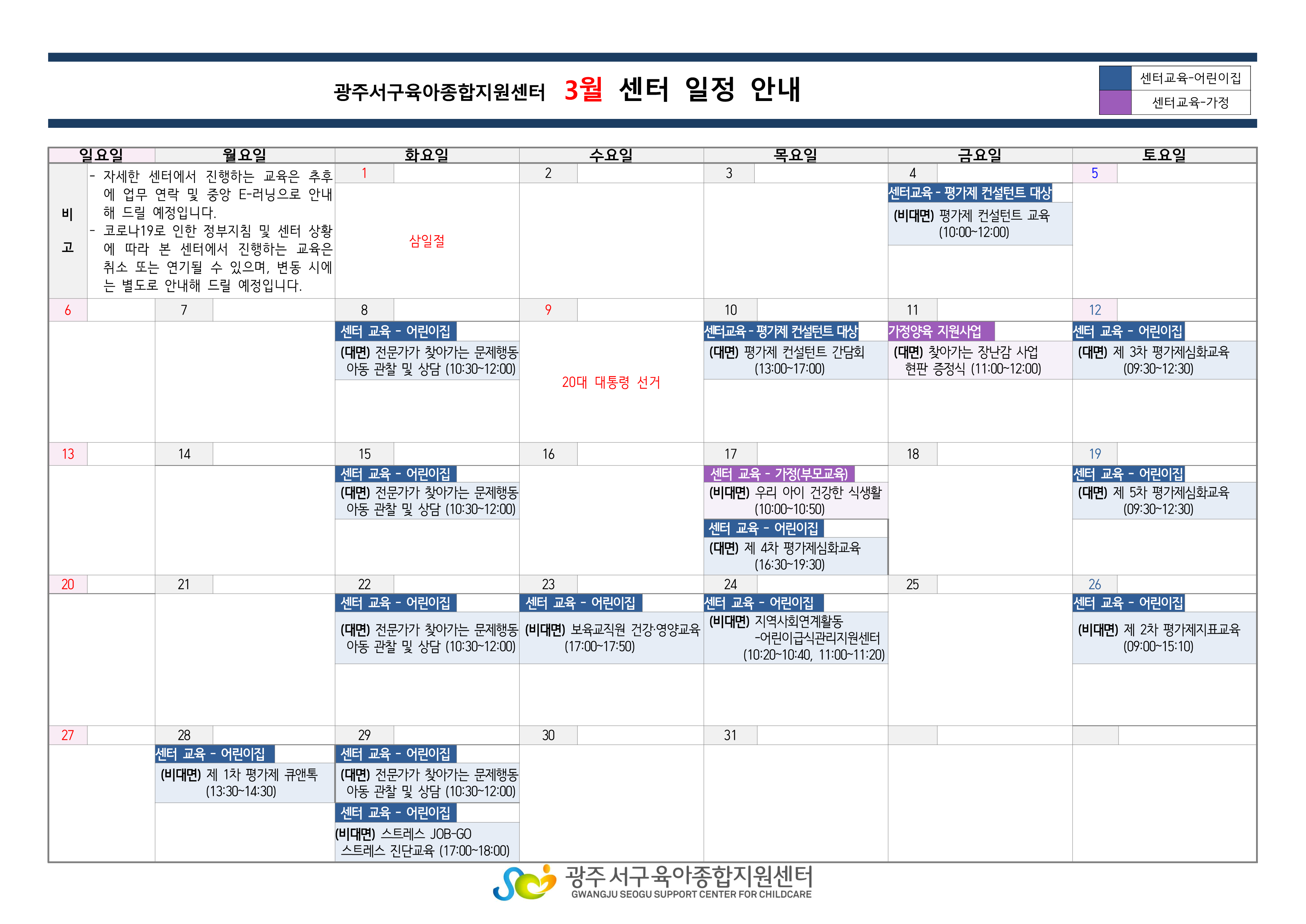 home 맘편한 내★일, 광주아이키움2.0 결혼·임신·출생 영유아 초·중·고 다양한 가족 일생활균형 커뮤니티 아동돌봄지원 소통방 나눔방 광주 아이키움 상담방 돌봄정보방 성폭력 피해 상담 및 사건지원 공지사항 우리동네 돌봄정보 기관별 공지사항 [광주서구육아종합지원센터] 3월 센터 일정 안내 등록일 : 2022-02-28 10:34 작성자 : 서구육아종합지원센터 조회수 : 236 목록