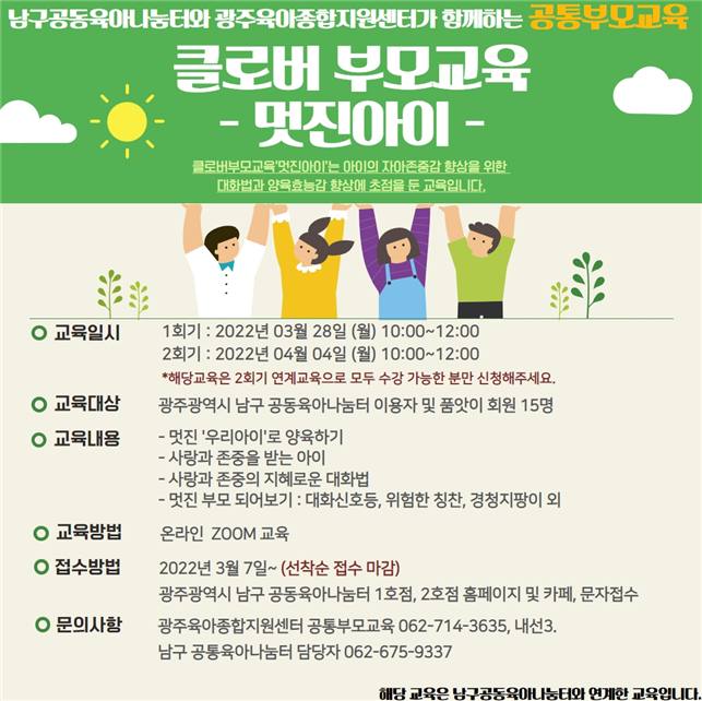 home 맘편한 내★일, 광주아이키움2.0 결혼·임신·출생 영유아 초·중·고 다양한 가족 일생활균형 커뮤니티 아동돌봄지원 소통방 나눔방 광주 아이키움 상담방 돌봄정보방 성폭력 피해 상담 및 사건지원 공지사항 우리동네 돌봄정보 기관별 공지사항 <광주남구공동육아나눔터> 부모교육 안내 등록일 : 2022-03-14 13:26 작성자 : 남구가족센터 조회수 : 266 목록