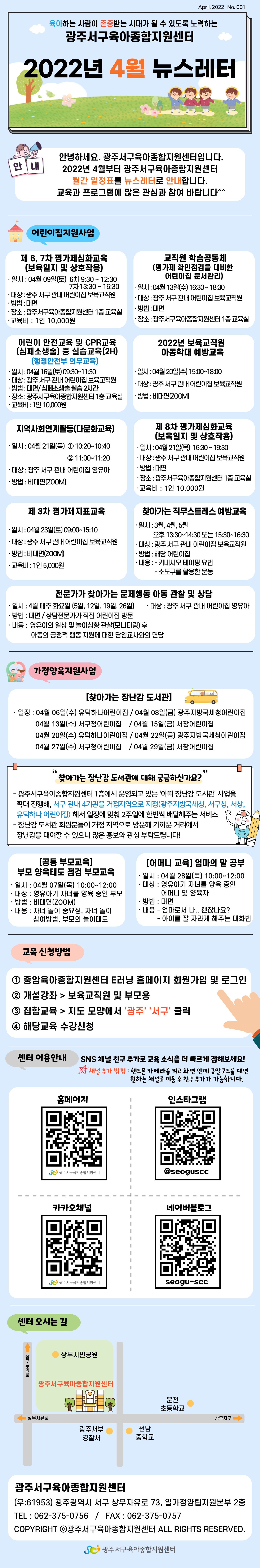 2022년 4월부터 광주서구육아종합지원센터 월간일정표를