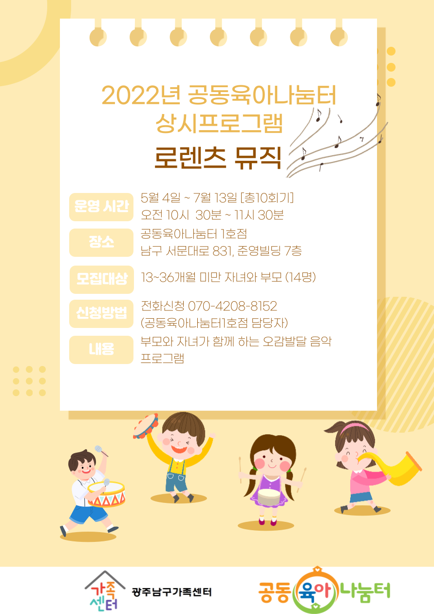 광주남구공동육아나눔터 상시프로그램<로렌츠뮤직> 모집안내