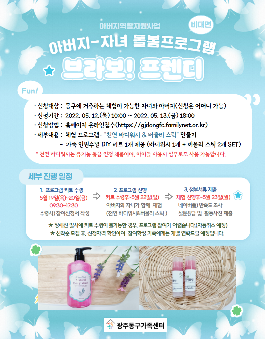 [광주동구가족센터]아버지-자녀 돌봄프로그램 "천연 바디워시& 버물리스틱 만들기"