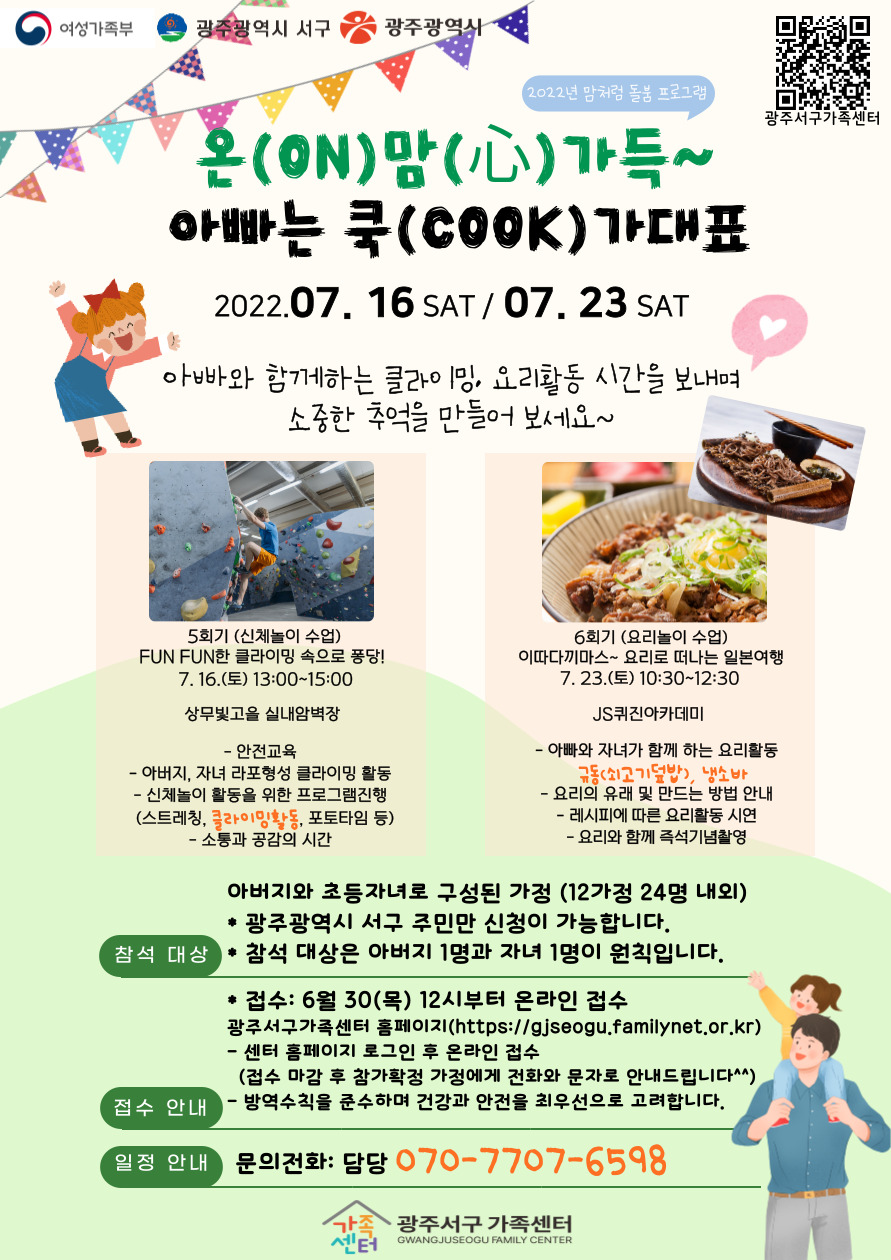 [서구가족센터]2022 맘처럼돌봄 프로그램"온(ON)맘(心)가득~아빠는 쿡(COOK)가대표" 대상자모집