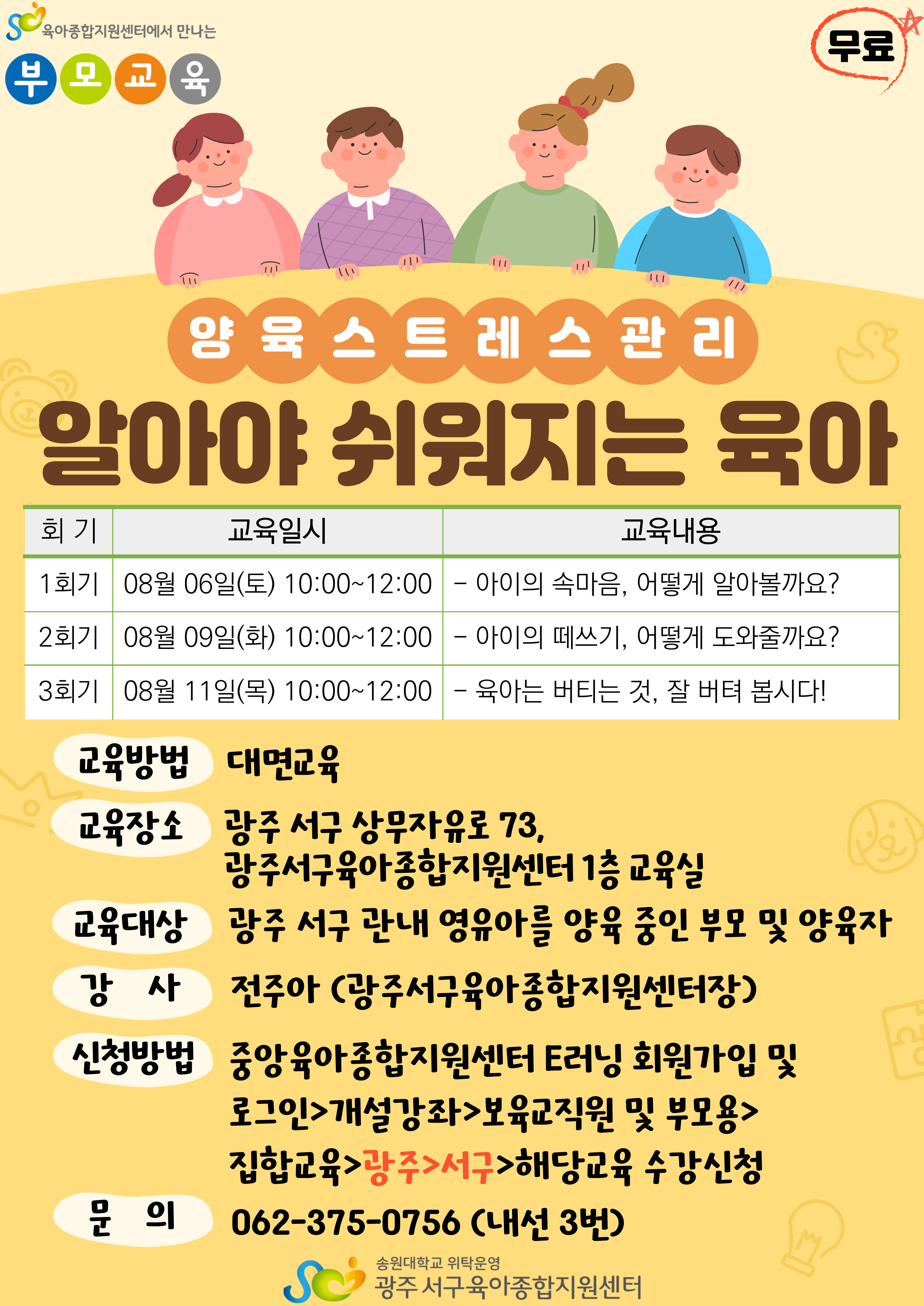 home 맘편한 내★일, 광주아이키움2.0 결혼·임신·출생 영유아 초·중·고 다양한 가족 일생활균형 커뮤니티 아동돌봄지원 소통방 나눔방 광주 아이키움 상담방 돌봄정보방 성폭력 피해 상담 및 사건지원 공지사항 우리동네 돌봄정보 기관별 공지사항 [광주서구육아종합지원센터] [공통 부모교육] 양육 스트레스 관리-알아야 쉬워지는 육아 등록일 : 2022-07-07 17:02 작성자 : 서구육아종합지원센터 조회수 : 331 목록