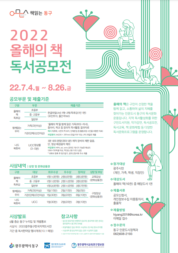 참가대상 : 광주시민 (개인, 가족, 학생, 직장인)대상도서 : 올해의 책(10권) 중 해당도서 1권