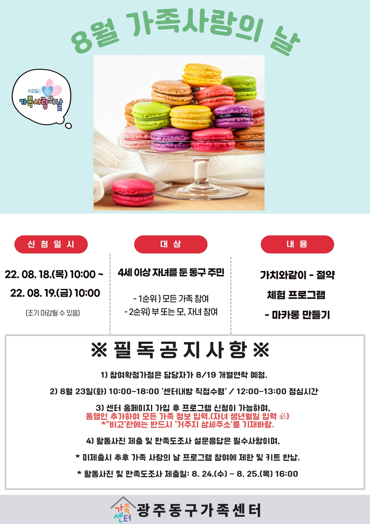 동구가족센터 - 8월 가족사랑의 날 참여가정 모집