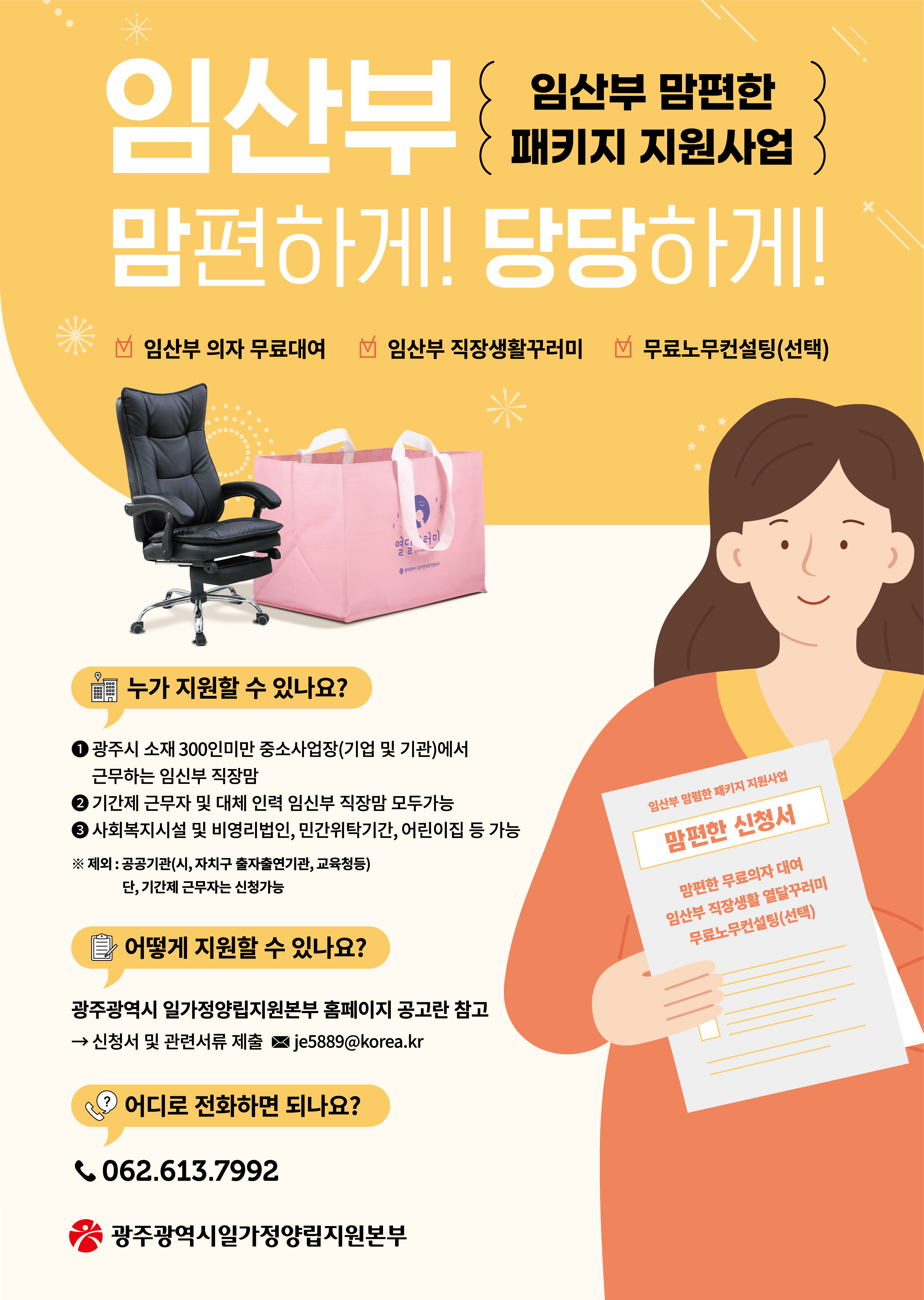 문의 및 접수기관: 광주광역시 일가정양립지원본부 직장맘지원센터 062-613-7992