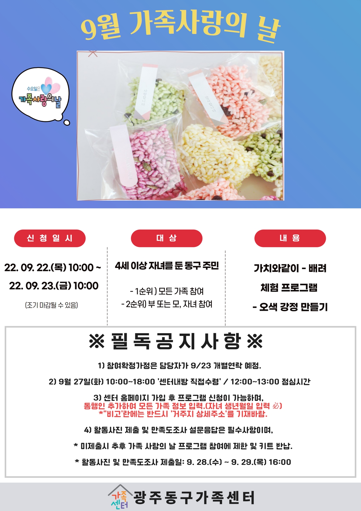 동구 가족센터에서 9월 가족사랑의 날 참여가정을 모집합니다 .!!
