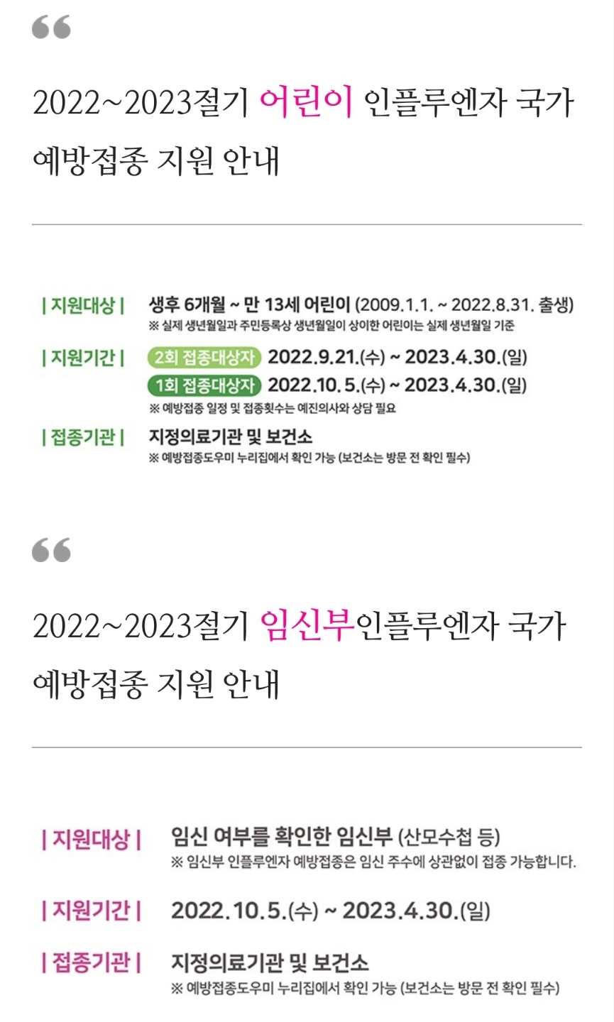 <2022~2023절기 임산부 인플루엔자 국가예방접종 지원 안내>