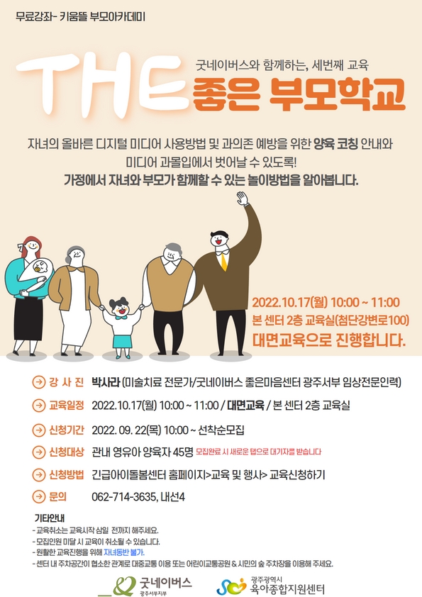 home 맘편한 내★일, 광주아이키움2.0 결혼·임신·출생 영유아 초·중·고 다양한 가족 일생활균형 커뮤니티 아동돌봄지원 소통방 나눔방 광주 아이키움 상담방 돌봄정보방 성폭력 피해 상담 및 사건지원 공지사항 우리동네 돌봄정보 기관별 공지사항 [광주육아종합지원센터] 10월 THE 좋은 부모학교 : 디지털 과의존 예방 및 놀이방법 등록일 : 2022-09-22 17:15 작성자 : 광주육아종합지원센터 조회수 : 212 목록