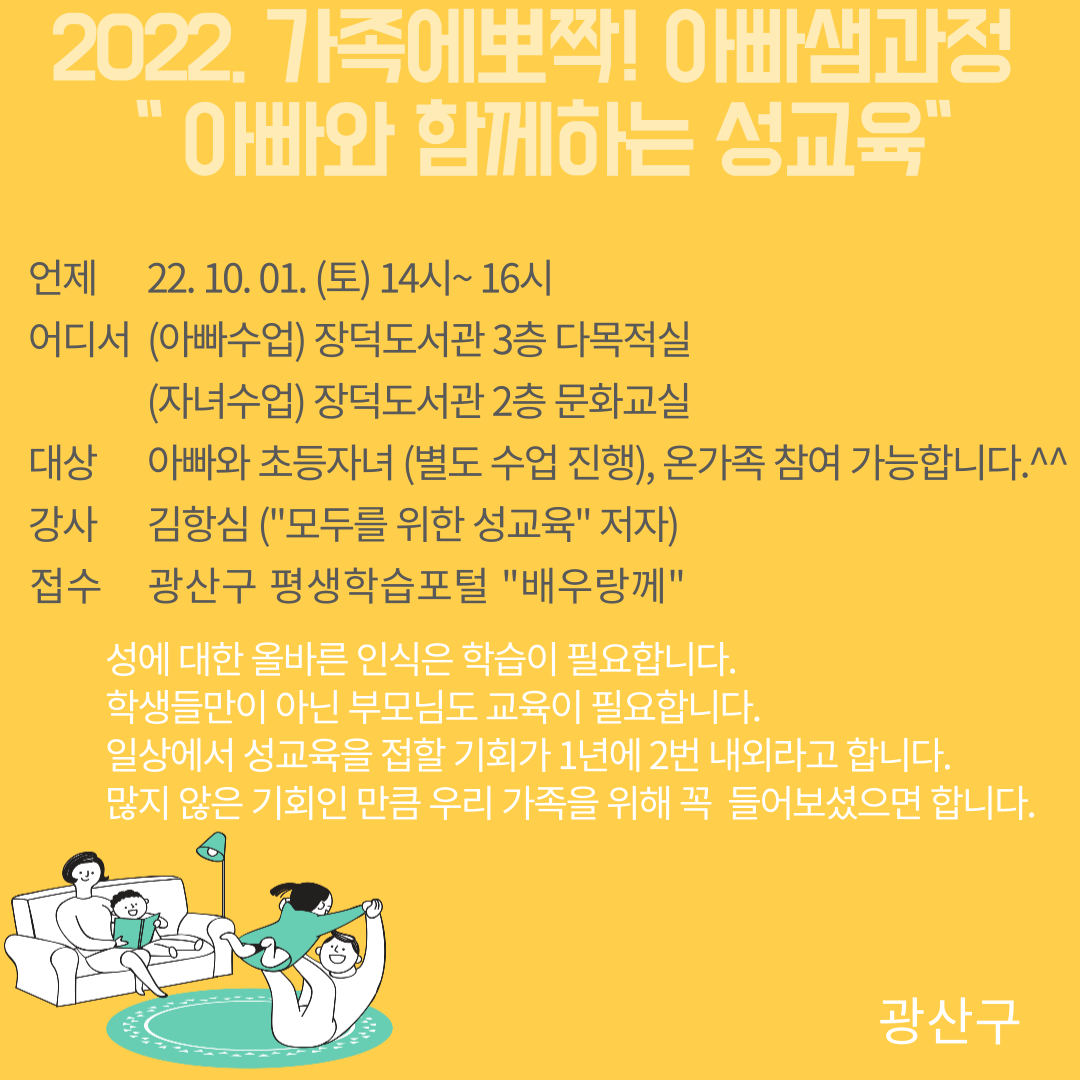 o 내용 : 온가족이 함께하는 성교육, 자녀와 부모님 별도로 진행됩니다.