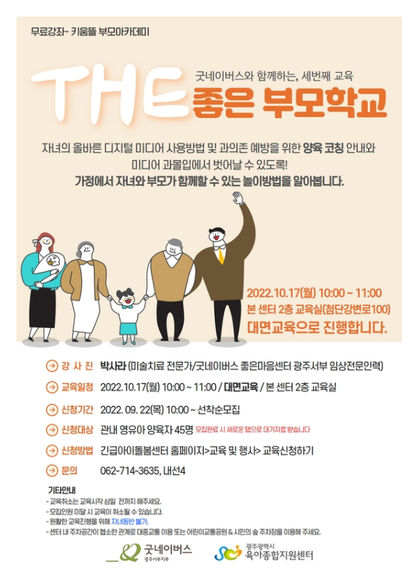 교육일정 : 2022. 10.17(월) 10:00~11:00 / 대면교육/본센터 2층 교육실