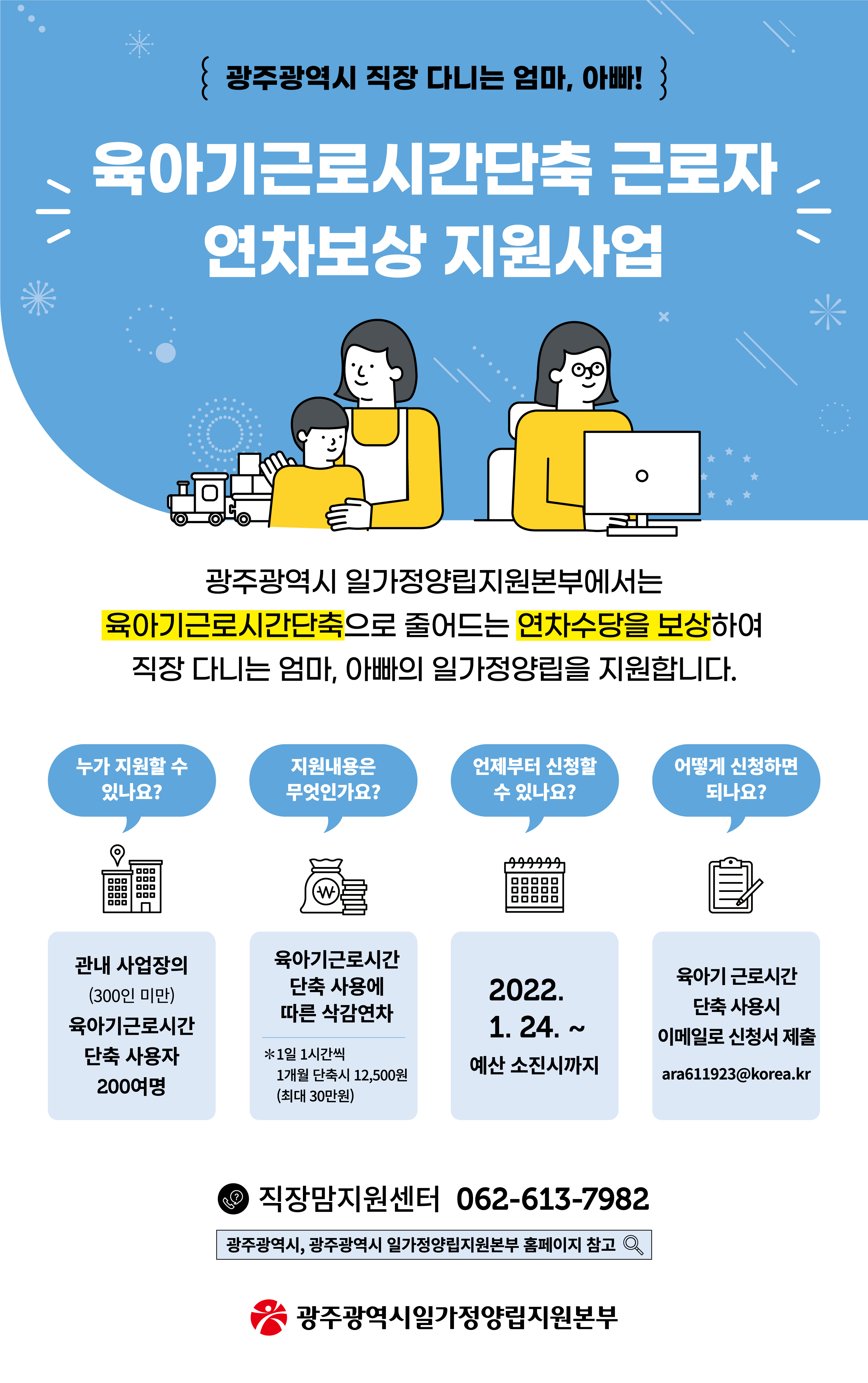 문의 및 접수기관: 광주광역시 일가정양립지원본부 직장맘지원센터 062-613-7982