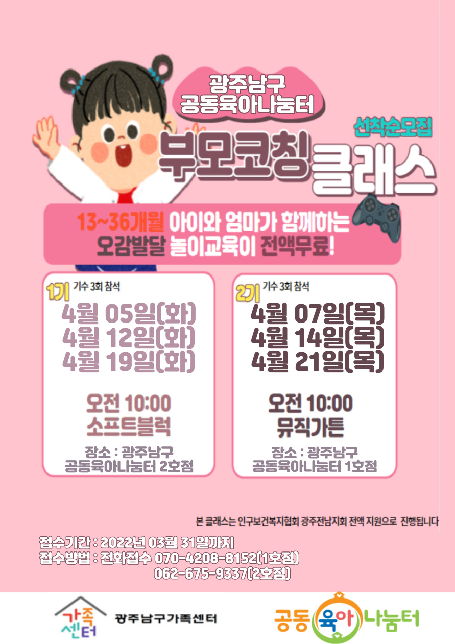 광주남구공동육아나눔터 부모코칭클래스 프로그램 안내