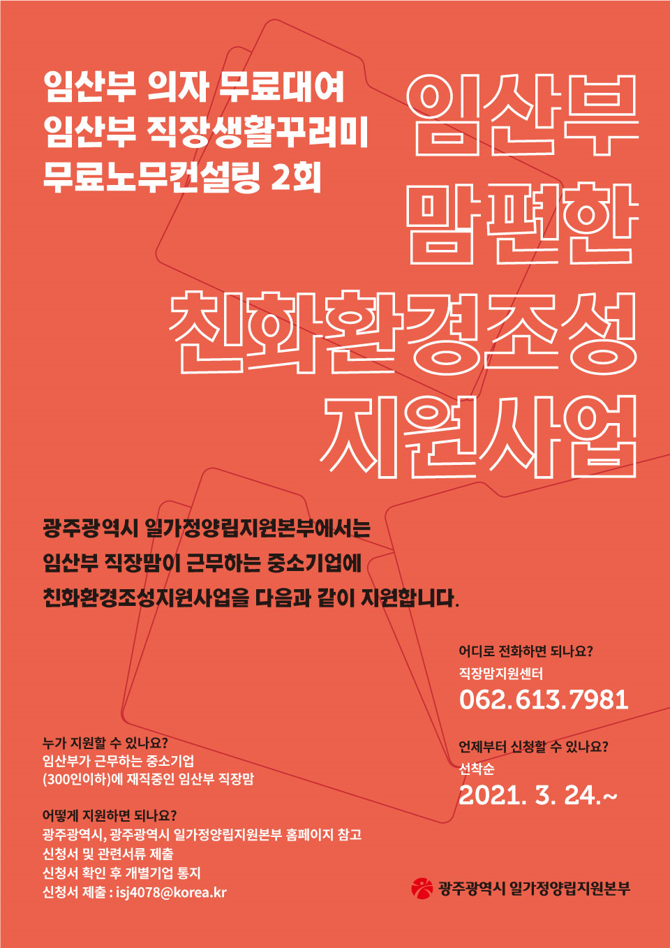 home 맘편한 내★일, 광주아이키움2.0 결혼·임신·출생 영유아 초·중·고 다양한 가족 일생활균형 커뮤니티 아동돌봄지원 소통방 나눔방 광주 아이키움 상담방 돌봄정보방 성폭력 피해 상담 및 사건지원 공지사항 우리동네 돌봄정보 기관별 공지사항 직장맘지원센터 사업 안내 등록일 : 2021-04-06 18:01 작성자 : 운영자 조회수 : 474 목록