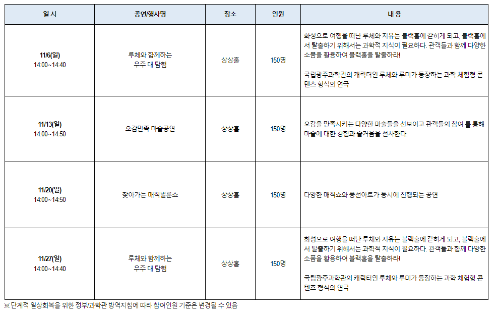 [국립광주과학관] 2022년 국립광주과학관 11월 주말행사