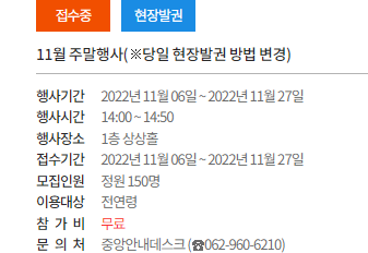 2022년 11월 주말행사 (11.6. ~ 11.27., 매주 일요일)