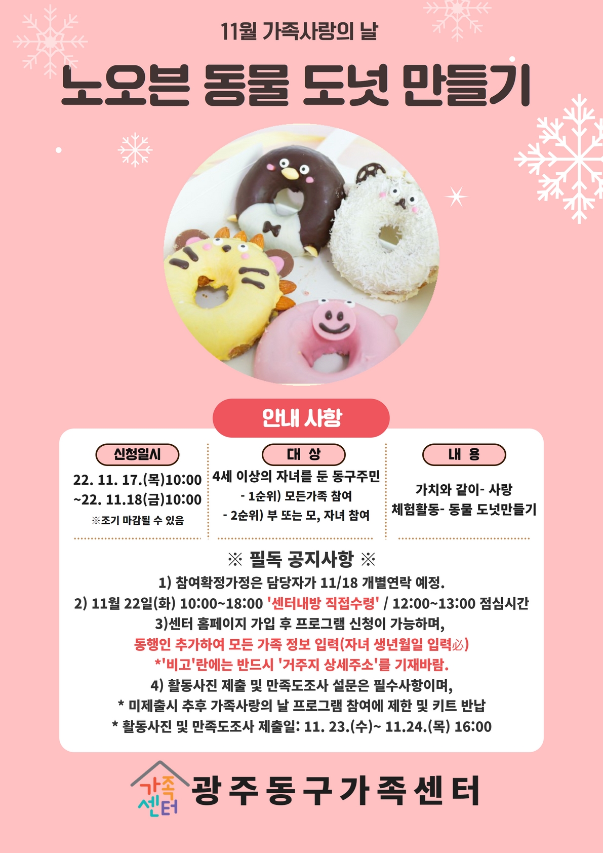 동구가족센터 11월 가족사랑의 날 참여가정모집