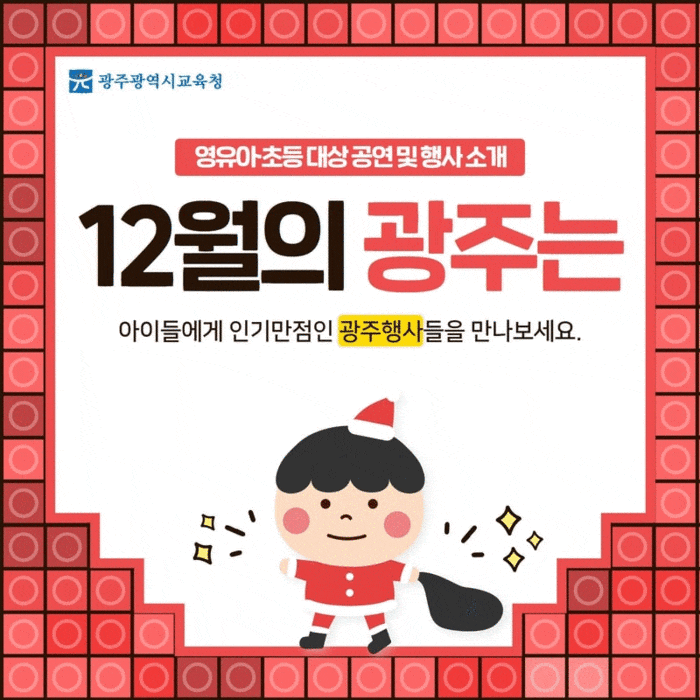 home 맘편한 내★일, 광주아이키움2.0 결혼·임신·출생 영유아 초·중·고 다양한 가족 일생활균형 커뮤니티 아동돌봄지원 소통방 나눔방 광주 아이키움 상담방 돌봄정보방 성폭력 피해 상담 및 사건지원 공지사항 우리동네 돌봄정보 기관별 공지사항 12월의 광주는 : 영유아·초등 대상 행사 소개 등록일 : 2022-12-14 10:49 작성자 : 운영자 조회수 : 173 * 출처 광주시교육청 http://enews.gen.go.kr/v4/?sid=76&wbb=md:view;uid:1022; 목록