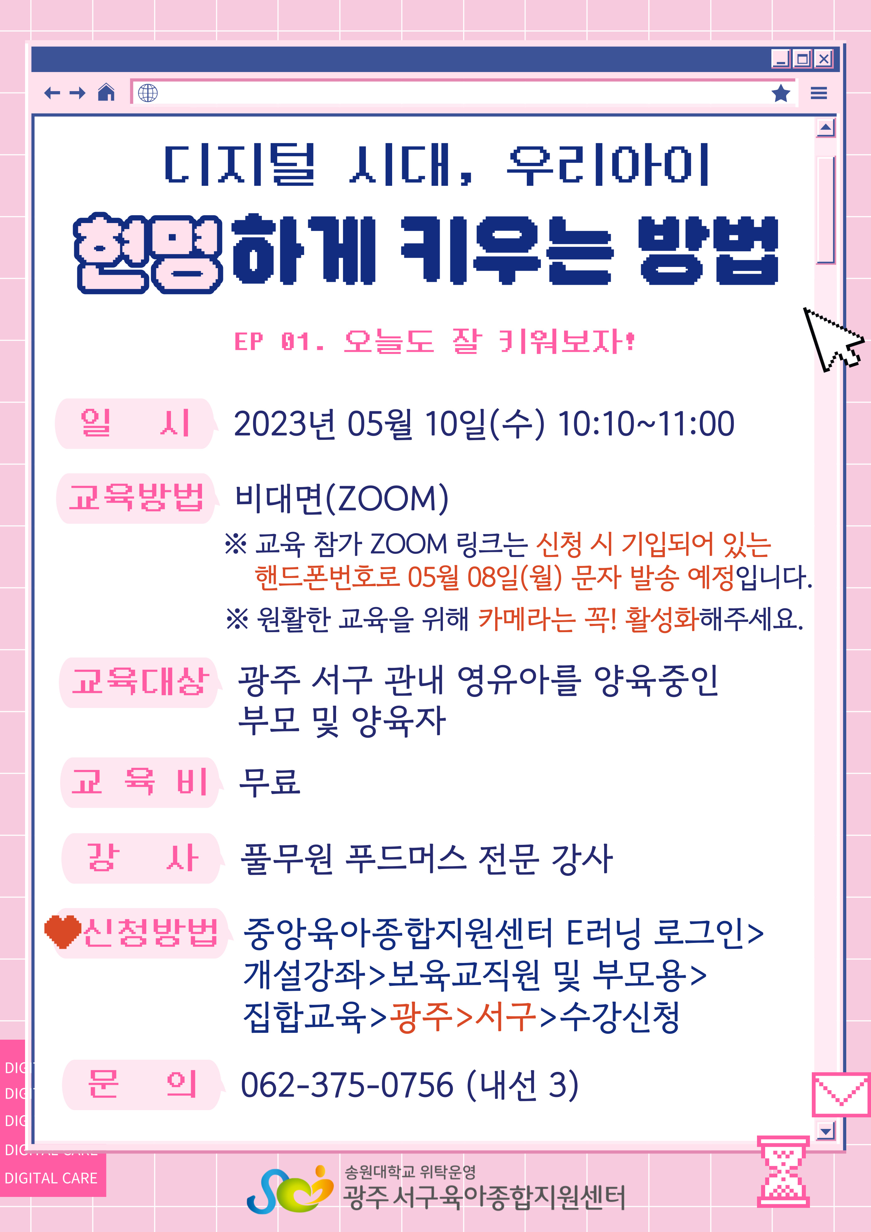 home 맘편한 내★일, 광주아이키움2.0 결혼·임신·출생 영유아 초·중·고 다양한 가족 일생활균형 커뮤니티 아동돌봄지원 소통방 나눔방 광주 아이키움 상담방 돌봄정보방 성폭력 피해 상담 및 사건지원 공지사항 우리동네 돌봄정보 기관별 공지사항 [광주서구육아종합지원센터] 부모교육(비대면)-디지털 시대, 우리 아이 현명하게 키우는 방법 안내 등록일 : 2023-04-06 13:56 작성자 : 서구육아종합지원센터 조회수 : 107 목록