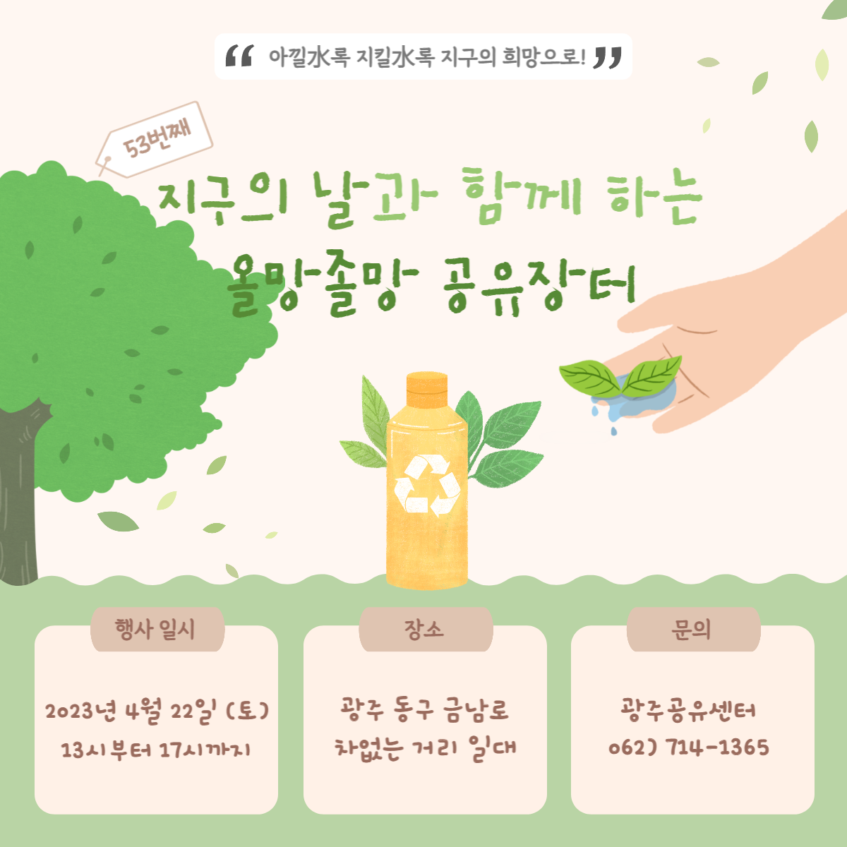 참여자여러분들의 환경지킴이 활동을 장려합니다.