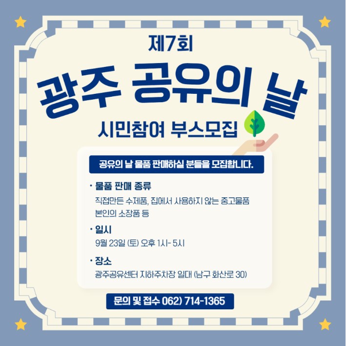 제7회를 맞이하는 광주공유의 날 시민참여 판매부스를 모집하고 있습니다.