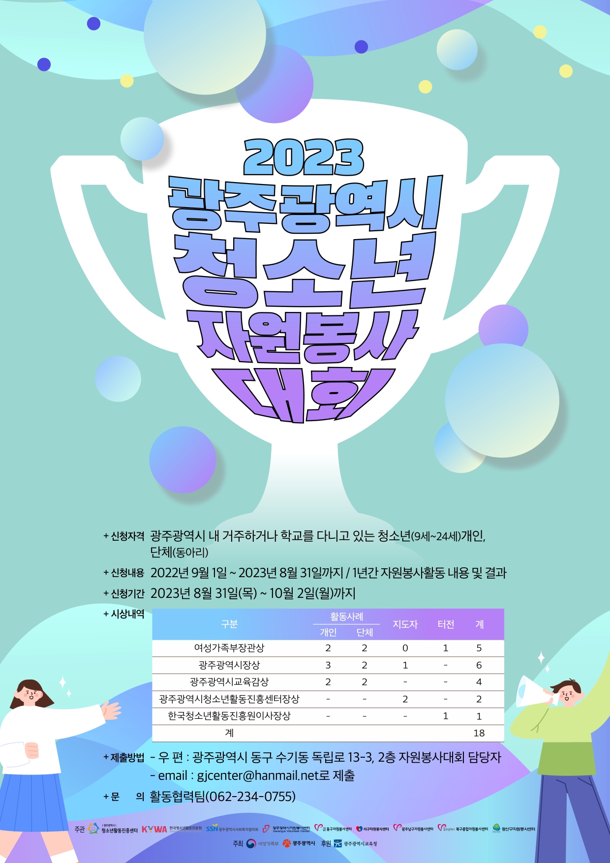 home 맘편한 내★일, 광주아이키움2.0 결혼·임신·출생 영유아 초·중·고 다양한 가족 일생활균형 커뮤니티 아동돌봄지원 소통방 나눔방 광주 아이키움 상담방 돌봄정보방 성폭력 피해 상담 및 사건지원 공지사항 우리동네 돌봄정보 기관별 공지사항 2023 광주광역시청소년자원봉사대회 안내(9세~24세) 청소년개인 및 단체(동아리) 등록일 : 2023-09-14 16:02 작성자 : 광주광역시 청소년활동진흥센터 조회수 : 104 첨부파일 2023년도 광주광역시청소년자원봉사대회 안내문 (7).pdf 다운로드 https://dokdo.in/f8i 목록
