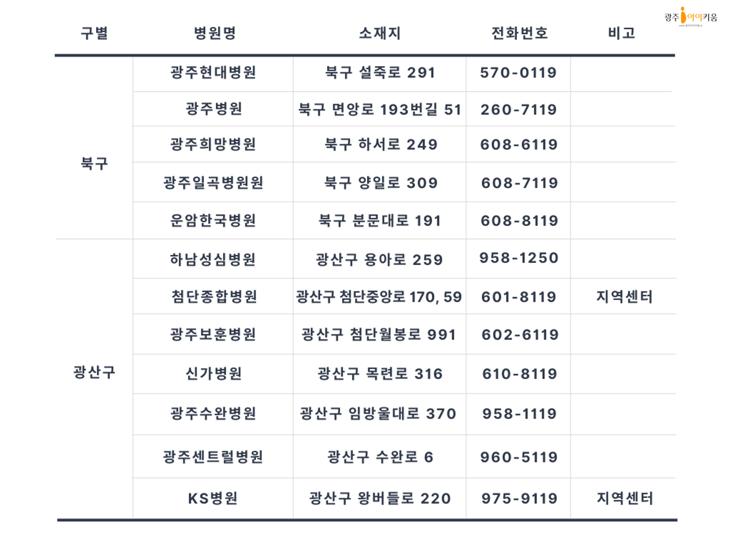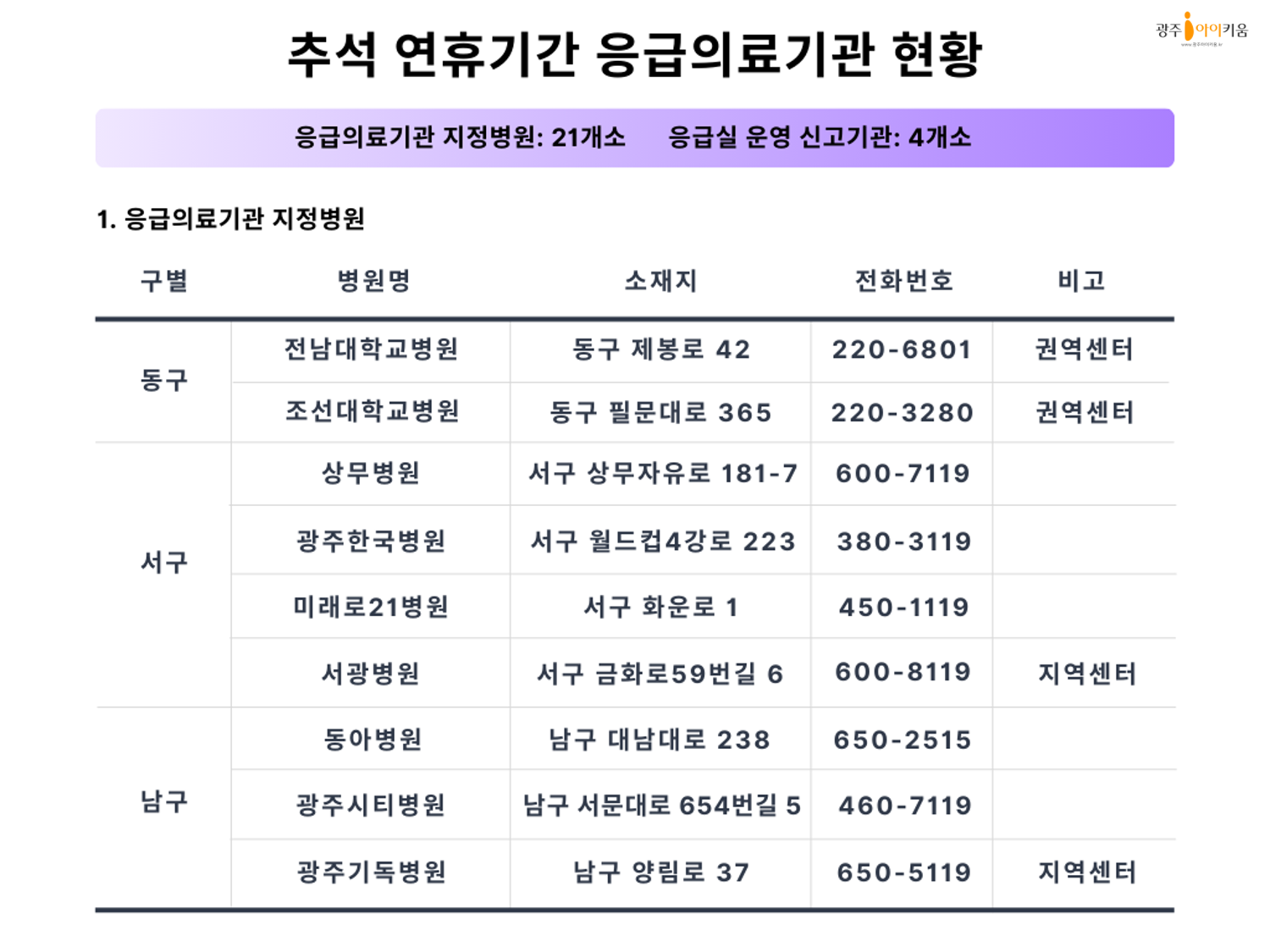 광주광역시 추석 연휴기간 응급의료기관 현황 안내