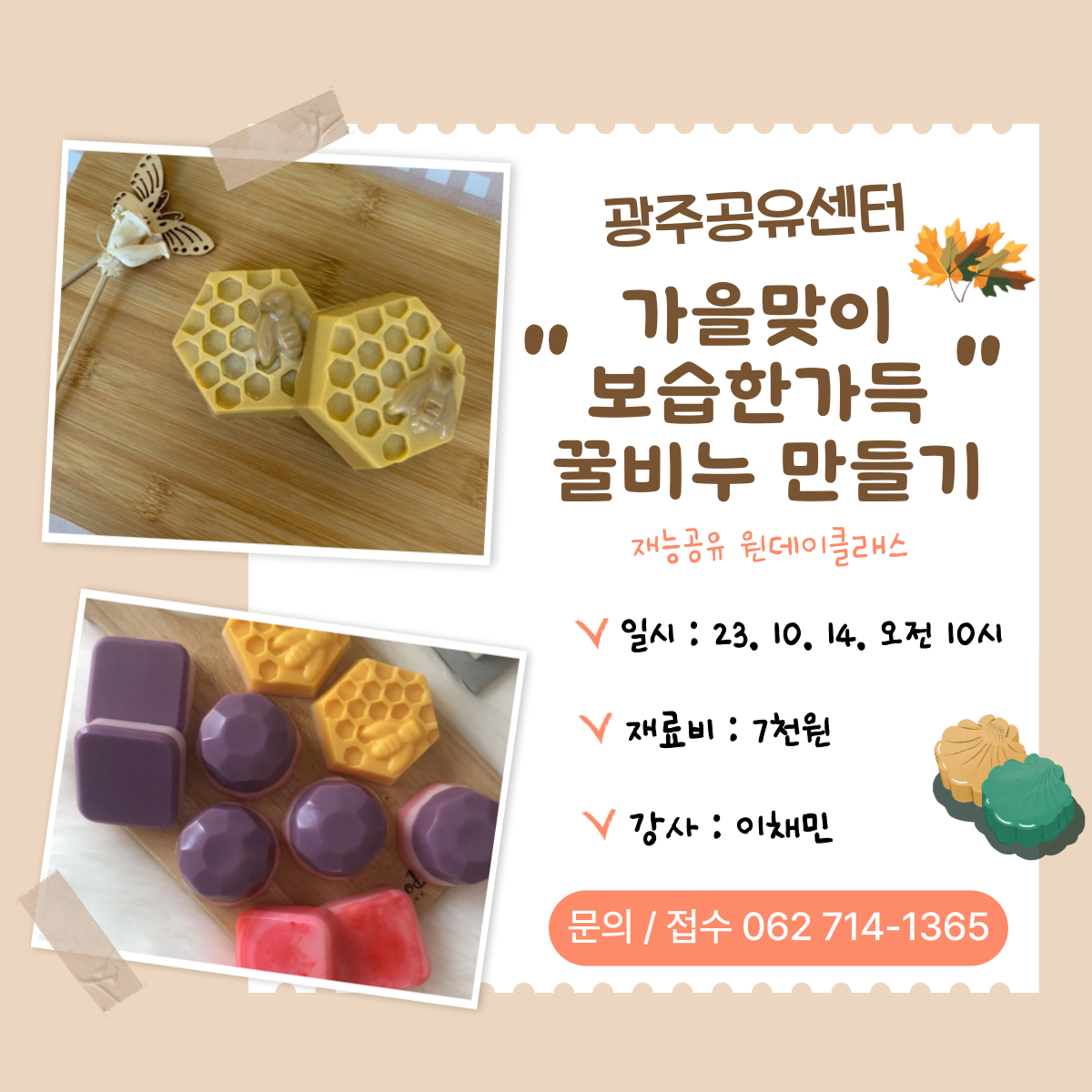 [재능공유] 가을맞이 보습 꿀비누 만들기