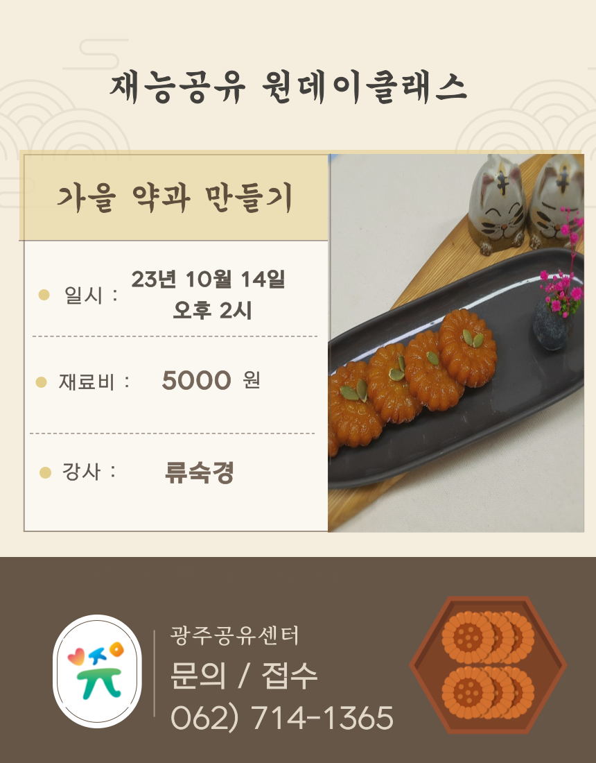home 맘편한 내★일, 광주아이키움2.0 결혼·임신·출생 영유아 초·중·고 다양한 가족 일생활균형 커뮤니티 아동돌봄지원 소통방 나눔방 광주 아이키움 상담방 돌봄정보방 성폭력 피해 상담 및 사건지원 공지사항 우리동네 돌봄정보 기관별 공지사항 [재능공유] 가을 약과 만들기 등록일 : 2023-10-09 13:50 작성자 : 광주공유센터 조회수 : 110 K-간식의 대표주자"약과" 만들기가 준비되어있습니다~달콤하면서 맛있는 식감을 가진약과를 광주공유센터에서 만들어보아요 :D일시 : 2023년 10월 14일 오후2시장소 : 광주공유센터 (남구화산로30)재로비 : 5천원접수 및 문의는062)714-1365입니다. 목록