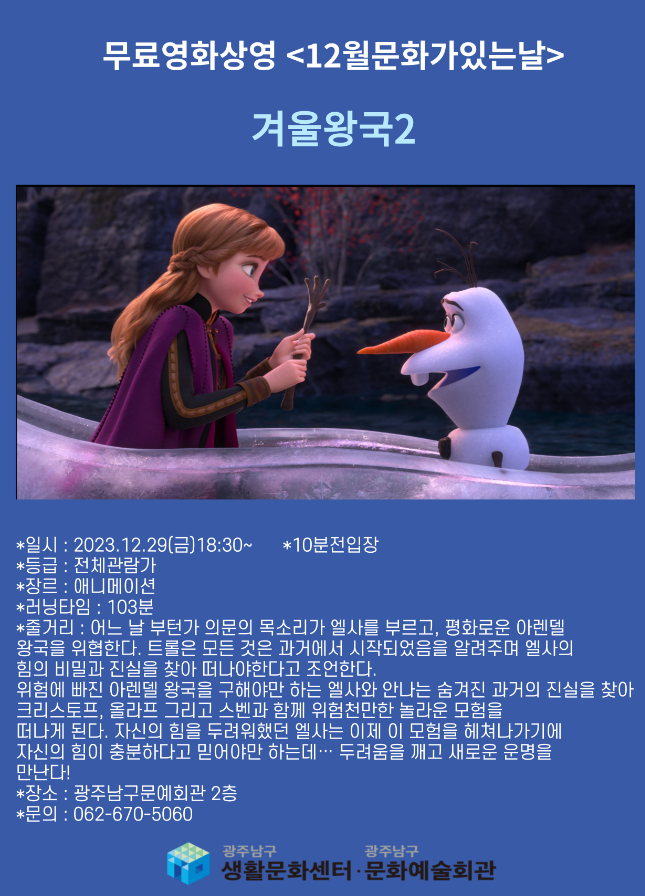 <12월 문화가 있는 날> 무료영화상영- 겨울왕국2