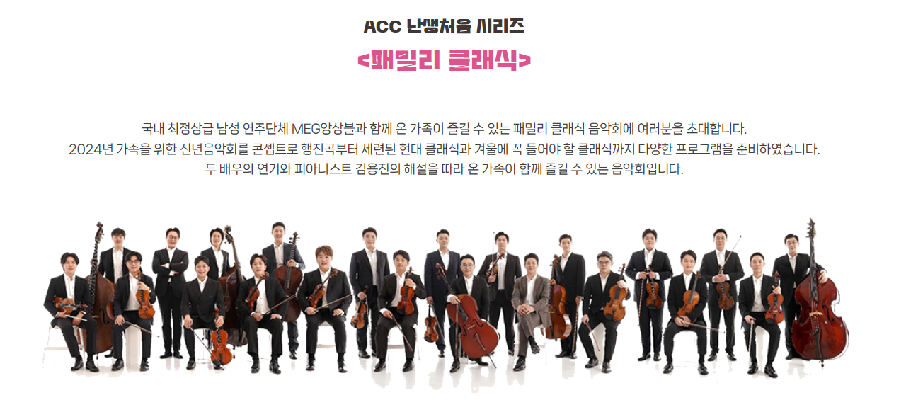 home 맘편한 내★일, 광주아이키움2.0 결혼·임신·출생 영유아 초·중·고 다양한 가족 일생활균형 커뮤니티 아동돌봄지원 소통방 나눔방 광주 아이키움 상담방 돌봄정보방 성폭력 피해 상담 및 사건지원 공지사항 우리동네 돌봄정보 기관별 공지사항 [ACC 난생처음 시리즈] 패밀리 클래식 등록일 : 2024-01-08 13:11 작성자 : 운영자 조회수 : 107 기간 : 2024.1.27.(토) ~ 1.28.(일) 시간 : 토 14:00 / 일 14:00 장소 : 어린이극장 대상 : 36개월 이상(2021년 1월 출생까지) 좌석 : 124석(휠체어석 4석 포함) 가격 : 전석 15,000원 예매 : 재단 홈페이지 / 매표소 / 콜센터 문의 : 1899-5566 진행 : 60분 안내 : 1월 10일 10:00 재단홈페이지 티켓 오픈 예정 목록