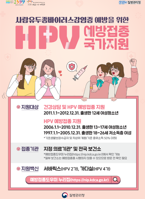 사람유두종바이러스 감염증 예방을 위한 국가지원이 되는 예방접종!!