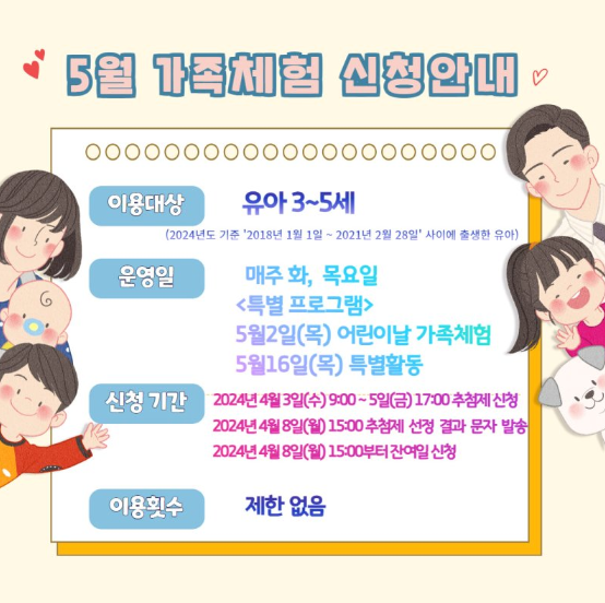 home 맘편한 내★일, 광주아이키움2.0 결혼·임신·출생 영유아 초·중·고 다양한 가족 일생활균형 커뮤니티 아동돌봄지원 소통방 나눔방 광주 아이키움 상담방 돌봄정보방 성폭력 피해 상담 및 사건지원 공지사항 우리동네 돌봄정보 기관별 공지사항 [광주유아교육진흥원] 5월 가족체험 신청안내 등록일 : 2024-04-02 09:52 작성자 : 운영자 조회수 : 72 <출처 : 광주유아교육진흥원> 목록