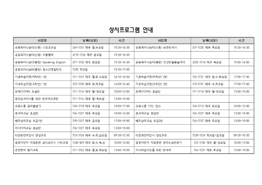 home 맘편한 내★일, 광주아이키움2.0 결혼·임신·출생 영유아 초·중·고 다양한 가족 일생활균형 커뮤니티 아동돌봄지원 소통방 나눔방 광주 아이키움 상담방 돌봄정보방 성폭력 피해 상담 및 사건지원 공지사항 우리동네 돌봄정보 기관별 공지사항 [북구가족센터]8월 센터프로그램 일정 및 안내 등록일 : 2024-08-01 00:00 작성자 : 운영자 조회수 : 72 목록
