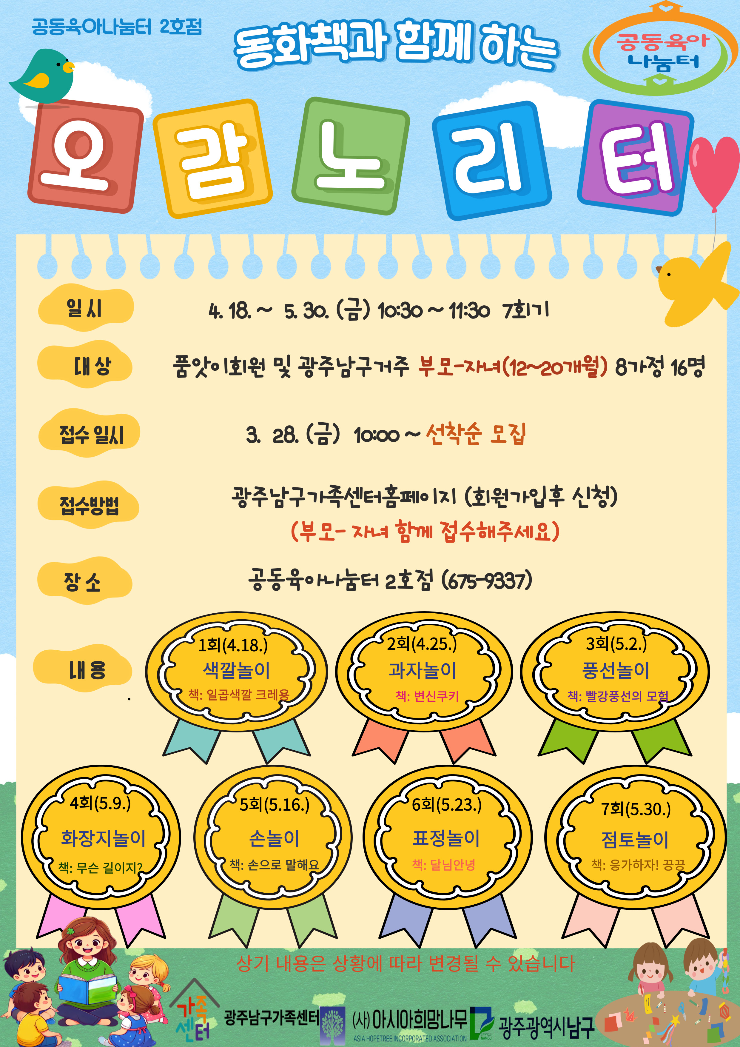 [광주남구가족센터] 동화책과 함께하는 오감노리터 프로그램 안내