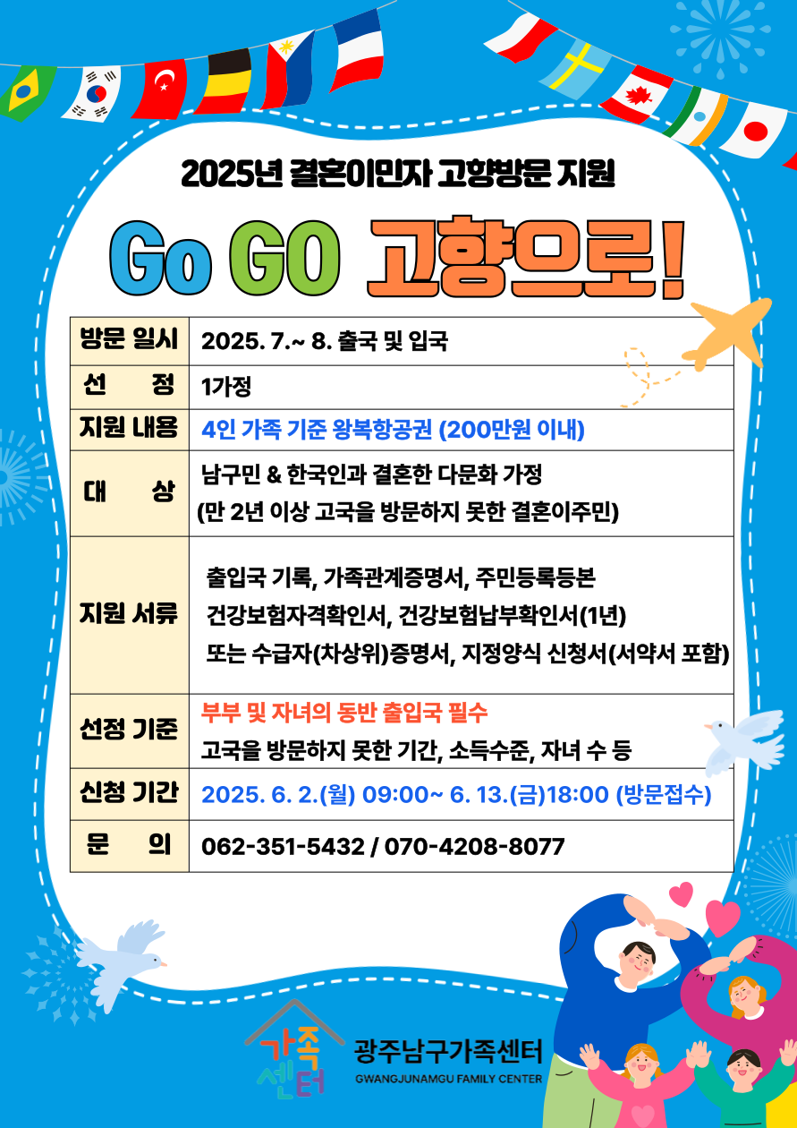 [광주남구가족센터] 결혼이민자 고향방문 지원 안내