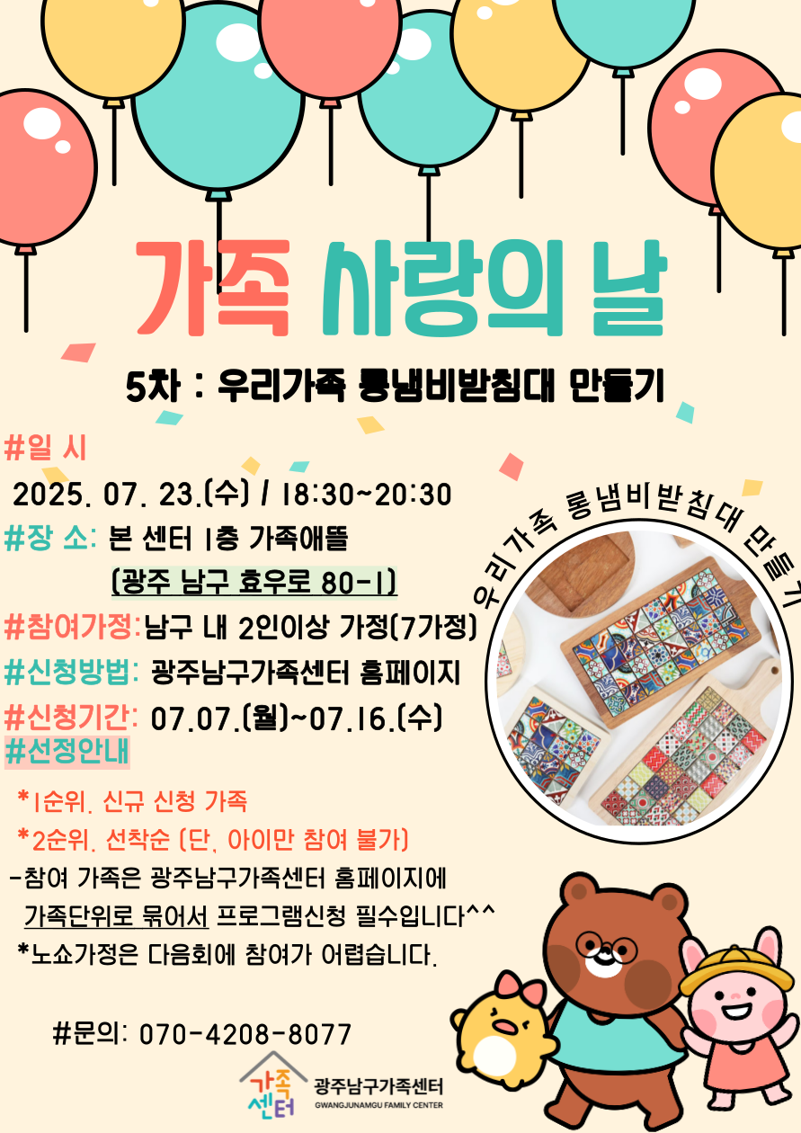 [광주남구가족센터] 7월 가족 사랑의날 프로그램 대상자 모집