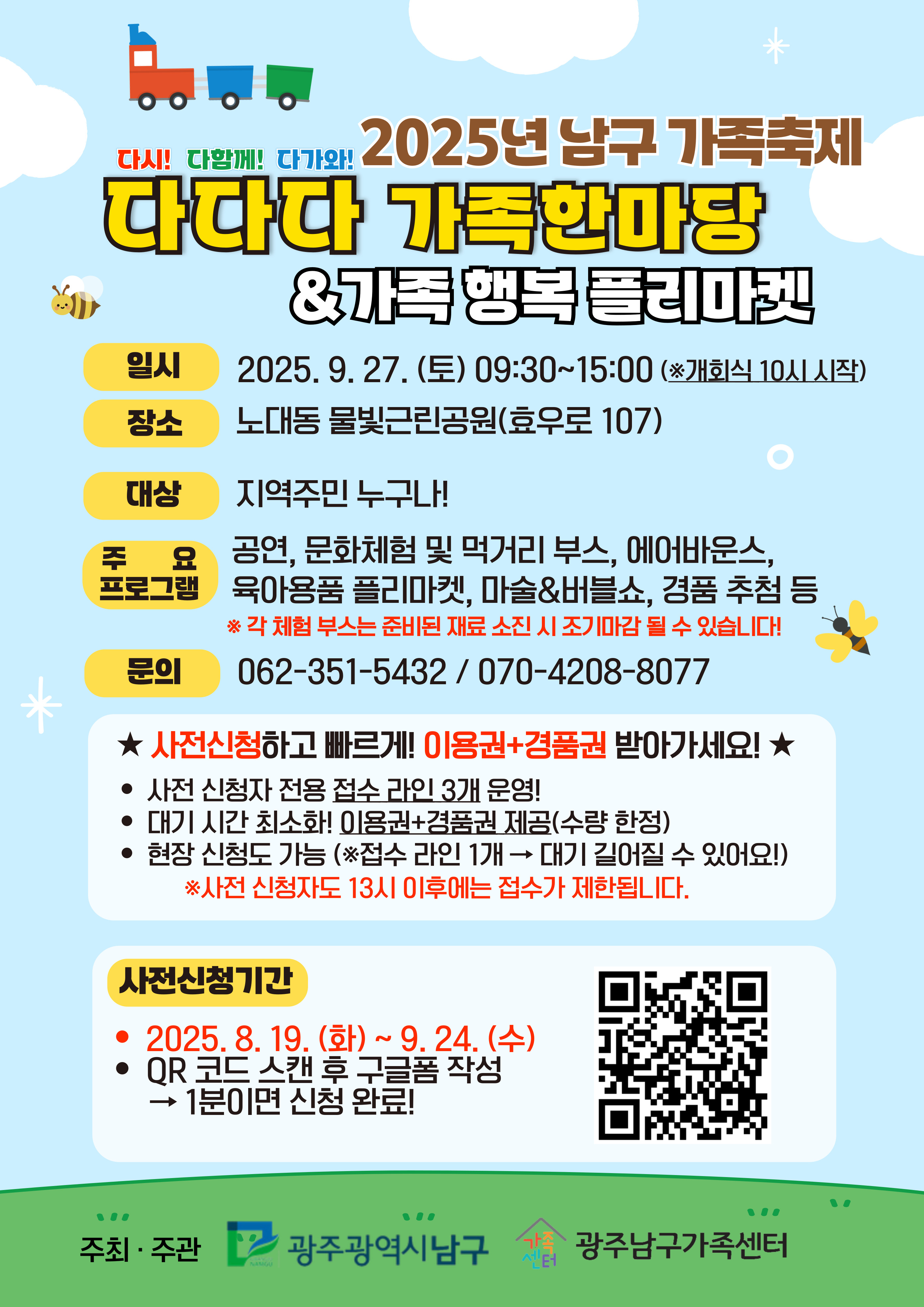 [광주남구가족센터] 2025년 남구가족축제 다다다 가족한마당 & 가족 행복 플리마켓 사전 신청 안내