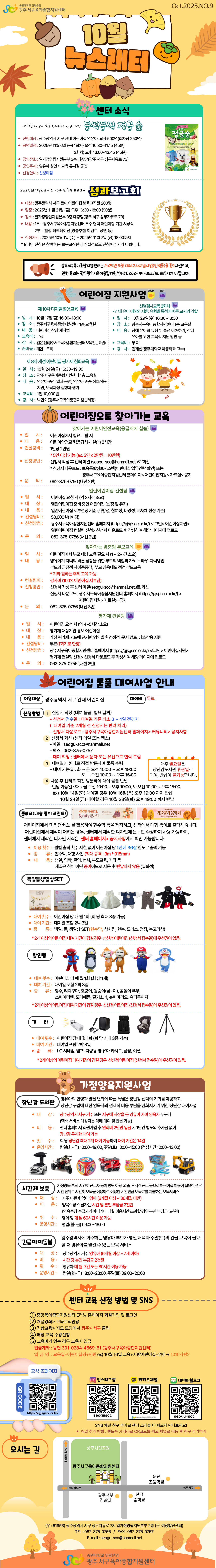 home 맘편한 내★일, 광주아이키움2.0 결혼·임신·출생 영유아 초·중·고 다양한 가족 일생활균형 커뮤니티 아동돌봄지원 소통방 나눔방 광주 아이키움 상담방 돌봄정보방 성폭력 피해 상담 및 사건지원 공지사항 우리동네 돌봄정보 기관별 공지사항 [광주서구육아종합지원센터] 10월 뉴스레터 등록일 : 2025-09-11 10:10 작성자 : 서구육아종합지원센터 조회수 : 11 목록