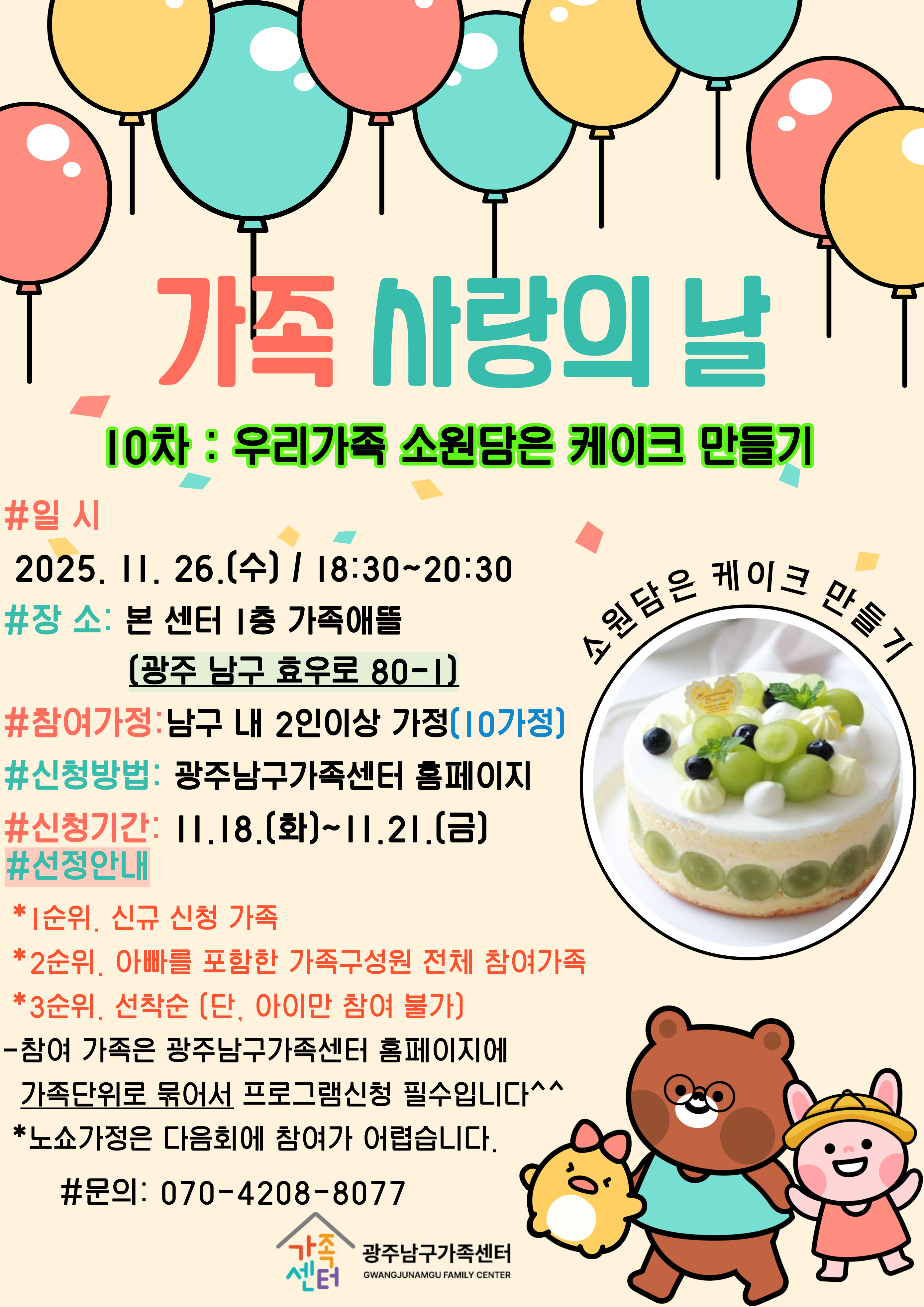 [광주남구가족센터] 가족 사랑의 날 프로그램 대상자 모집 안내