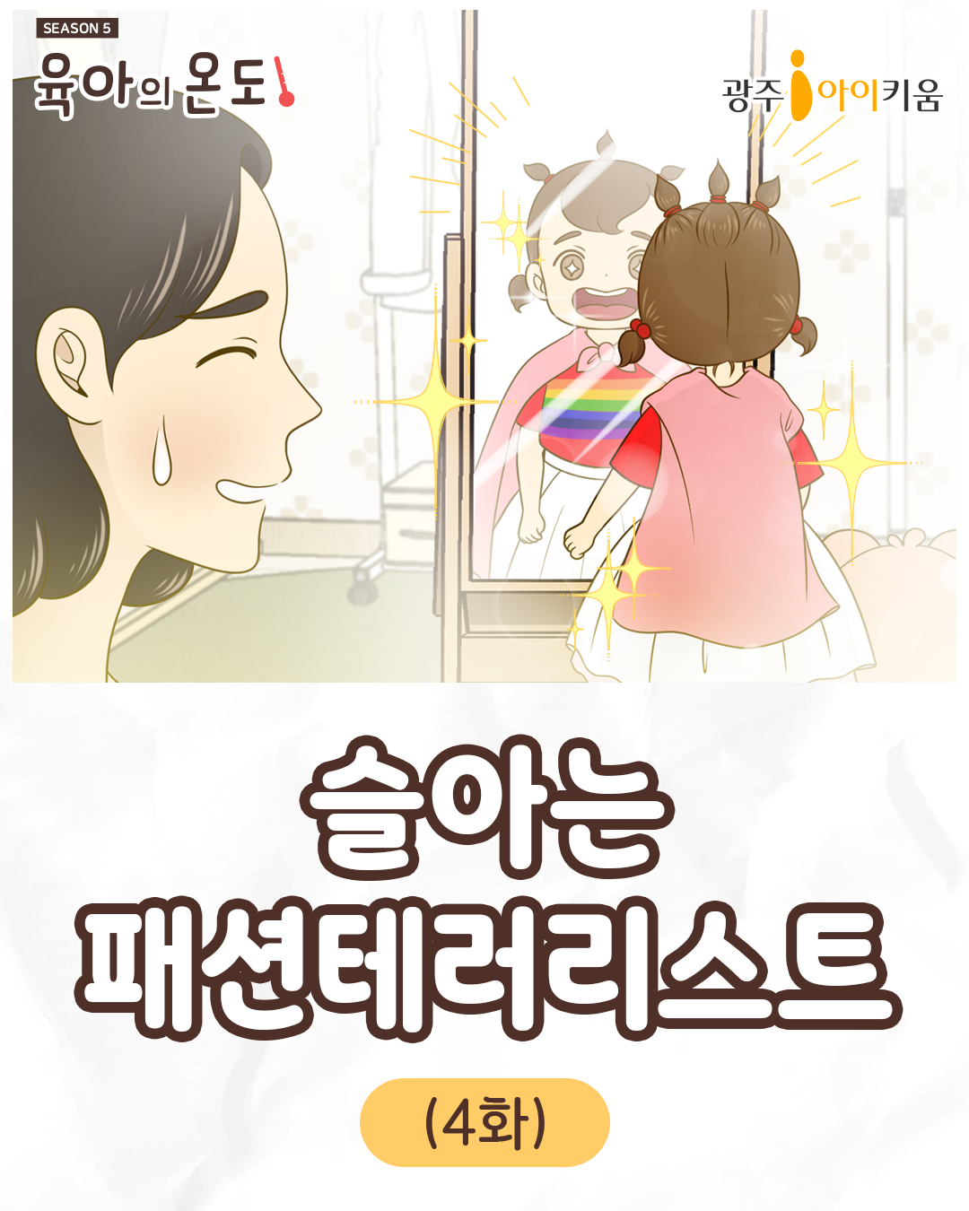 home 맘편한 내★일, 광주아이키움2.0 결혼·임신·출생 영유아 초·중·고 다양한 가족 일생활균형 커뮤니티 아동돌봄지원 소통방 나눔방 광주 아이키움 상담방 돌봄정보방 성폭력 피해 상담 및 사건지원 공지사항 이벤트소식 참여게시판 카드뉴스 동영상 아이키움 칼럼 성평등 육아웹툰 로고&캐릭터 [육아웹툰] 육아의 온도5- ep.4 슬아는 패션테러리스트 등록일 : 2025-06-24 17:14 작성자 : 운영자 조회수 : 166 첨부파일 KakaoTalk_20250624_163936402.png 다운로드 목록
